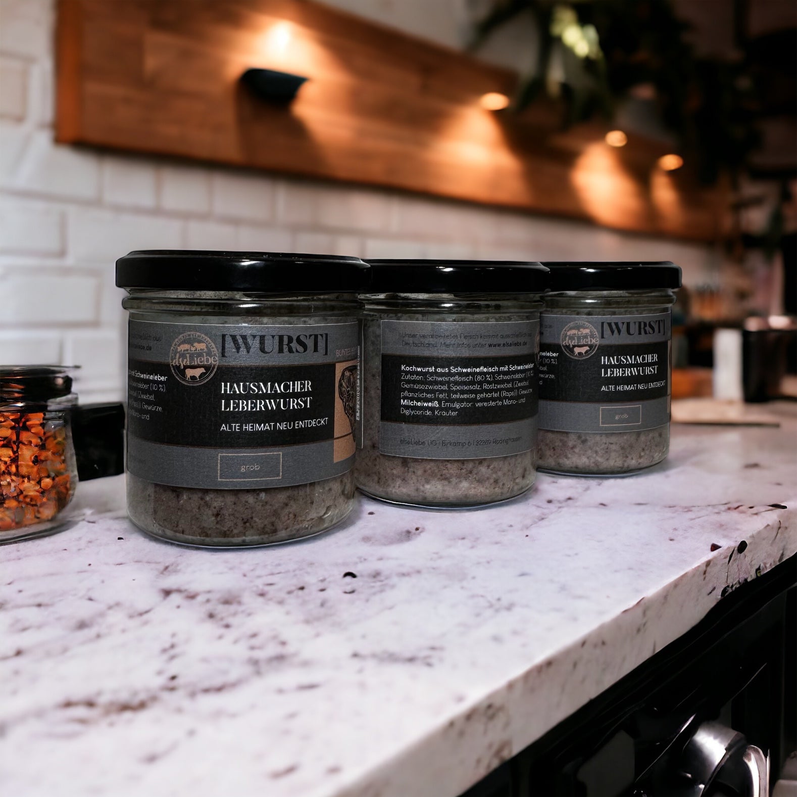 Drei Gläser von unserer Leberwurst vom Bunten Bentheimer nach Hausmacher Art. Das bedeutet diese Wurst ist eher etwas gröber, wurde aber ohne Zusatz von Konservierungsstoffen hergestellt. Das weiche und schmackhafte Fett der Bunten Bentheimer verleiht unserer Leberwurst den ganz besonderen Schmelz. Genießt es auf Brot mit Gürkchen oder lieber mit einem schönen Glas Wein. Natürlich funktioniert auch Bier super zu dieser deftigen Leckerei.