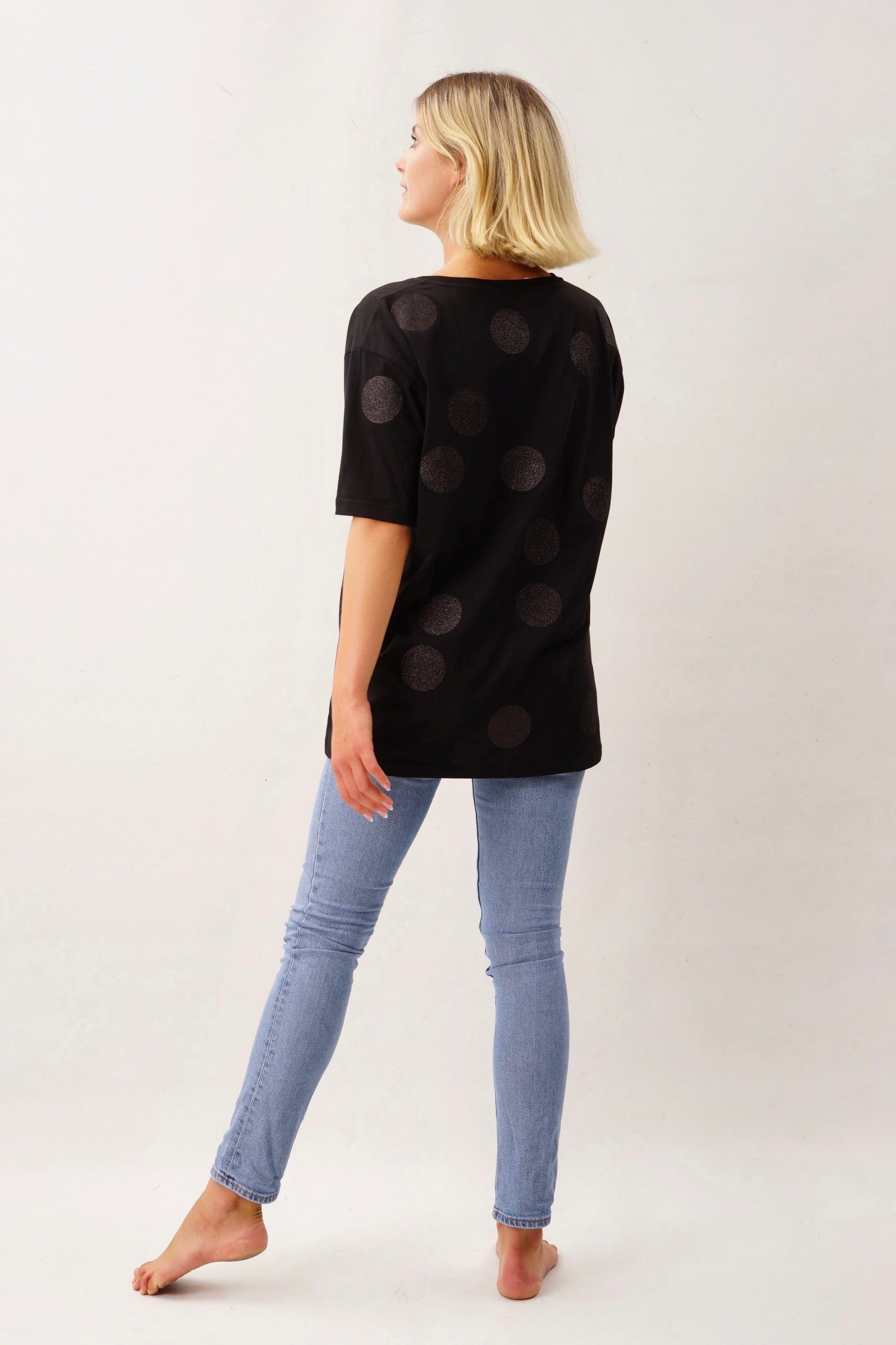 This high quality festive unisex T-shirt 100%cotton comes with big glitter dots allover.