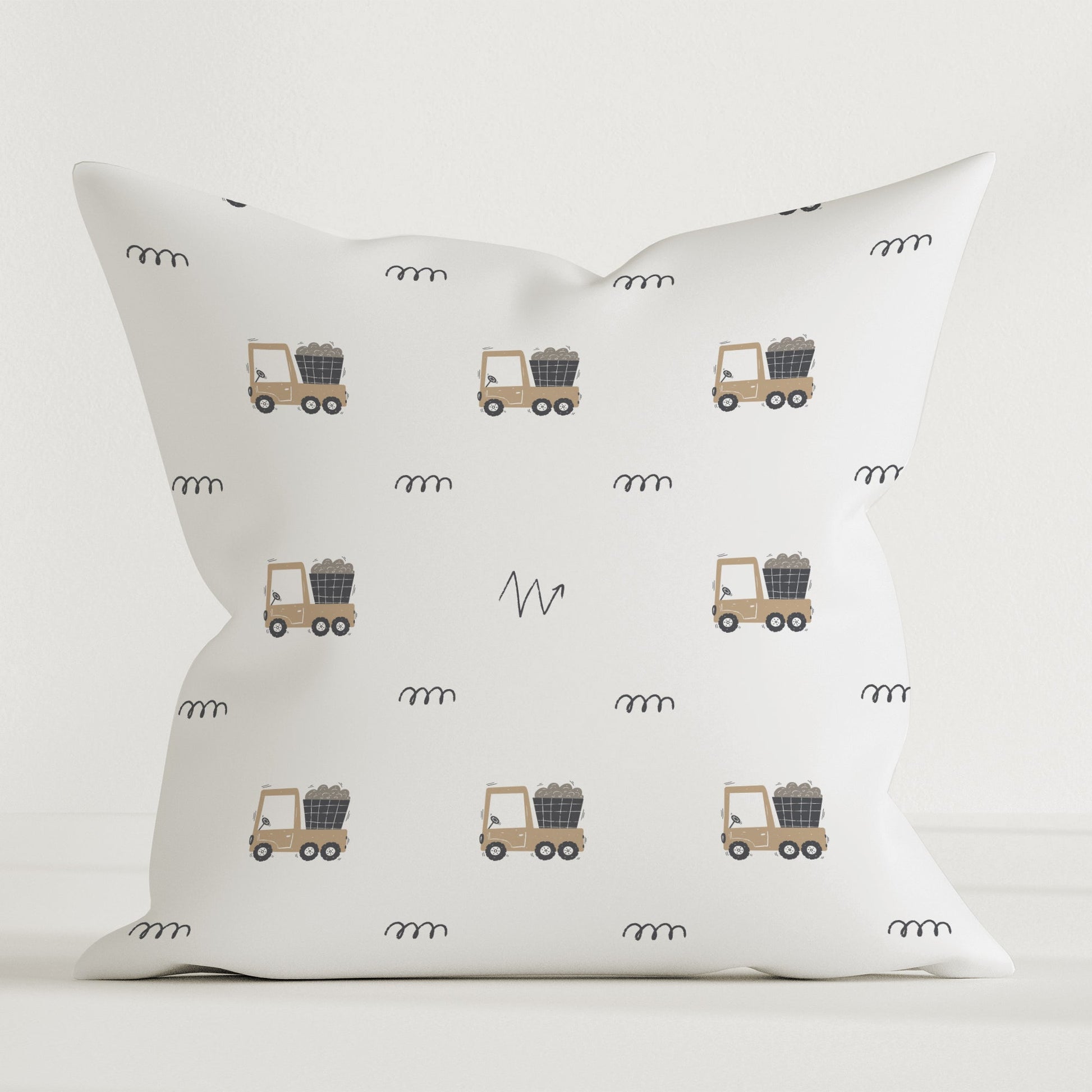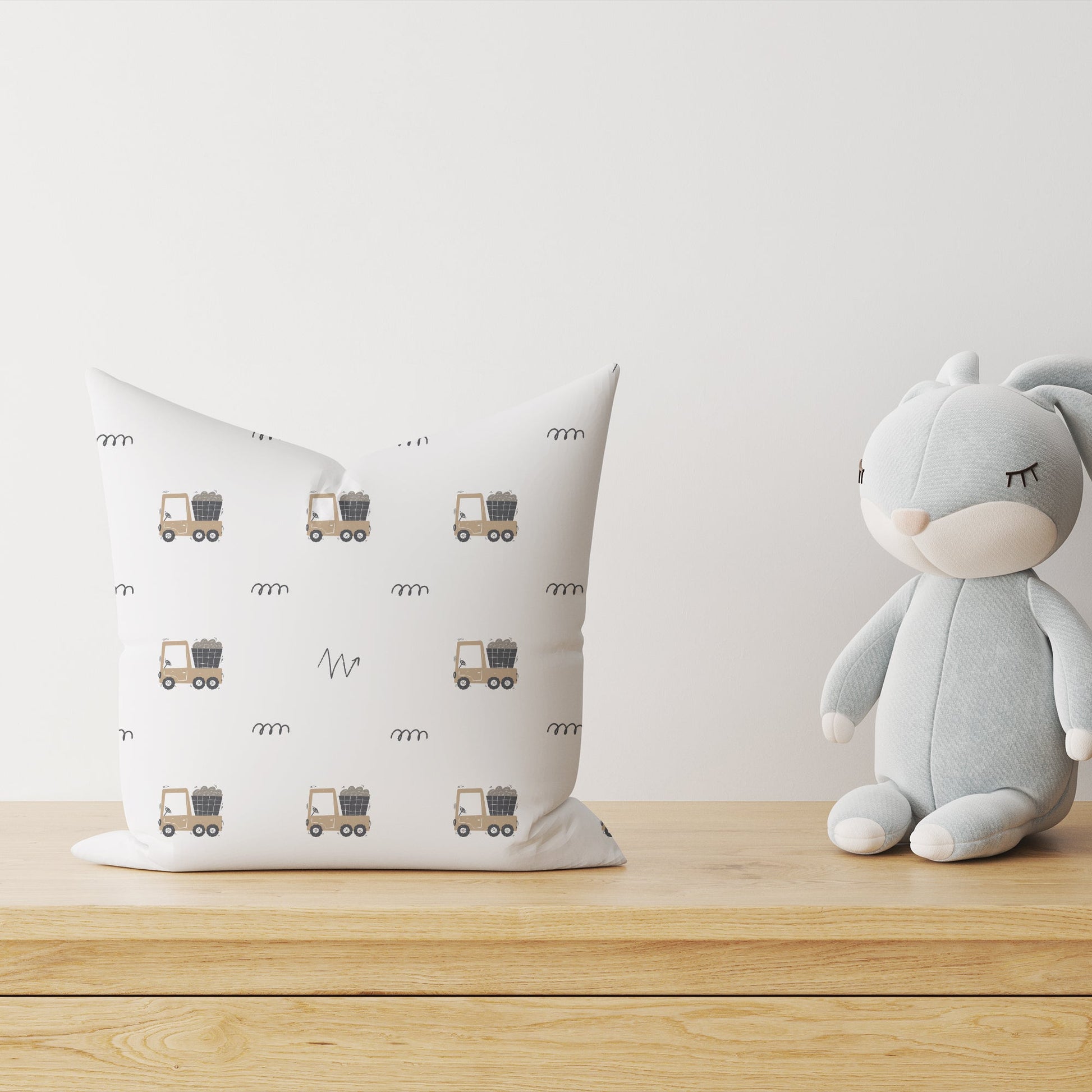 Baustellenabenteuer: Das "Baufahrzeuge"-Design auf unserem Dekokissen verwandelt jedes Kinderzimmer in eine lebhafte Baustelle. Die süßen Bagger in soften Farben sind ein Hingucker für jedes Kinderzimmer.