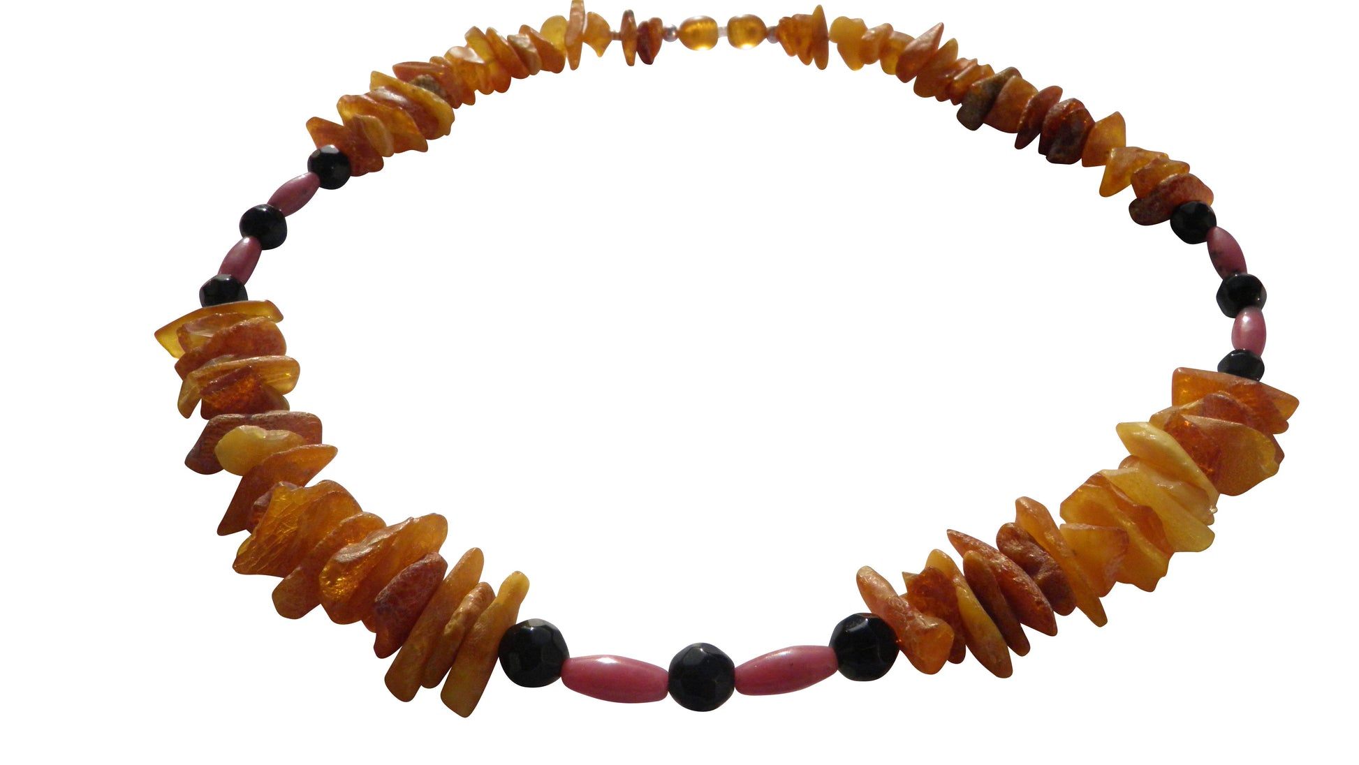 Material: Naturbernstein, Rhodonit, Glasperlen, Schmuckperlen, Schmuckdraht