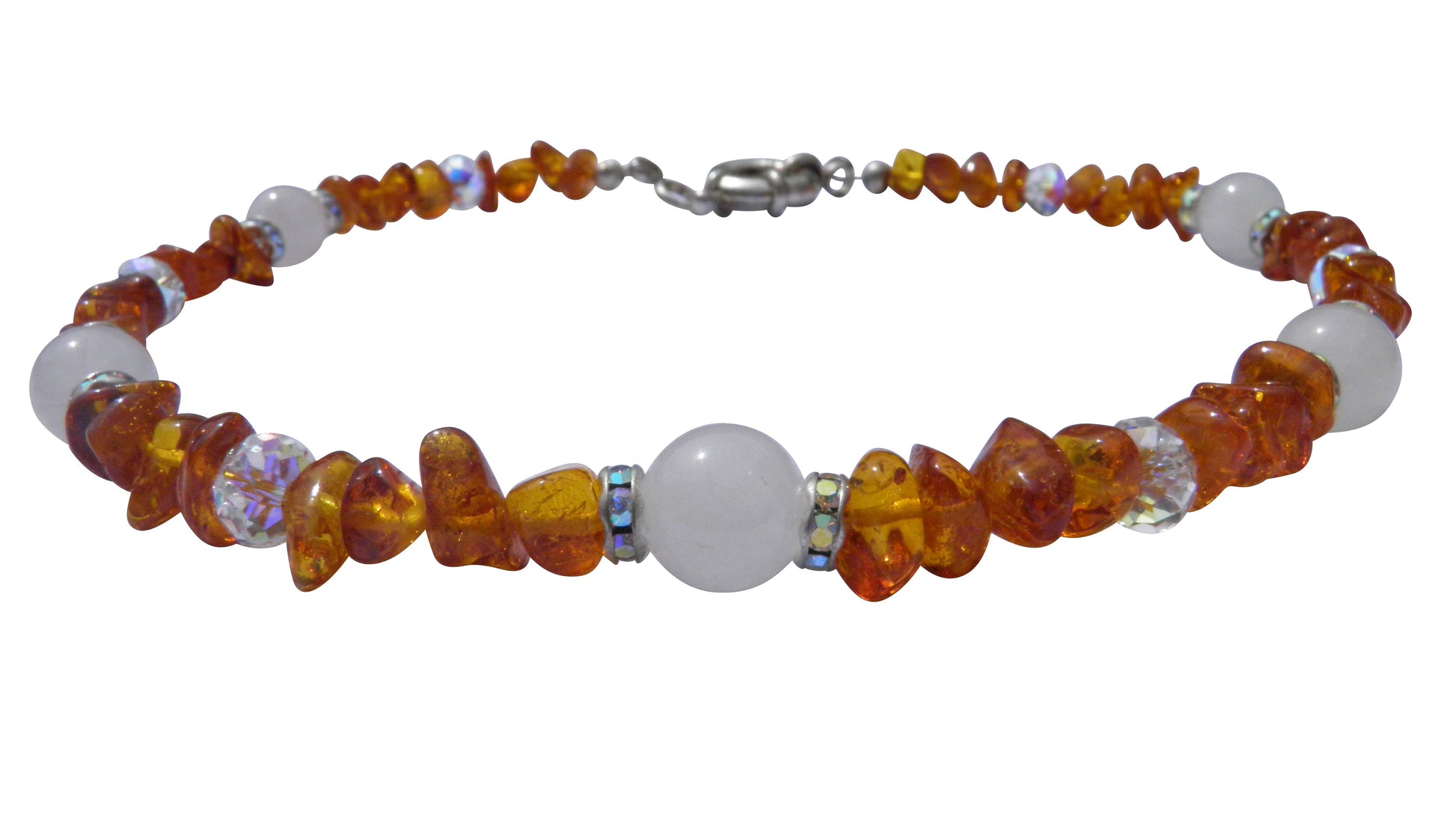 Bernsteinkette Hund Rosenquarz & Swari Länge 37cm