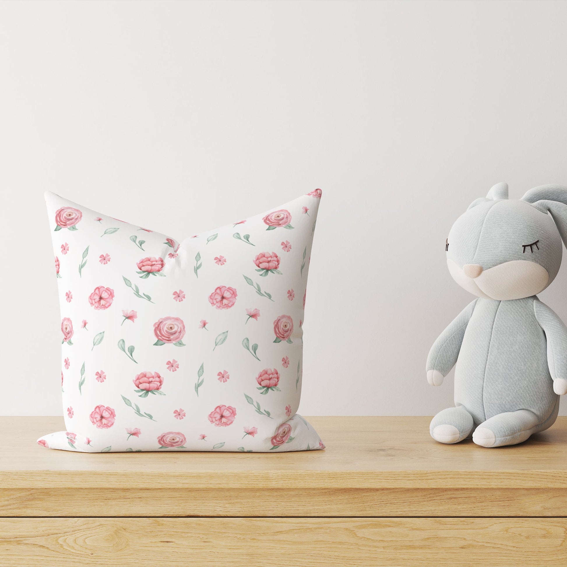 Floraler Zauber für kleine Träumende: Zarte Blüten in sanftem Rosa entfalten sich auf diesem Dekokissen und hüllen das Kinderzimmer in eine verträumte, blumige Atmosphäre. Die liebevoll gestalteten Blumen sind eine Einladung, sich zurückzulehnen und die Schönheit der Natur zu bewundern.