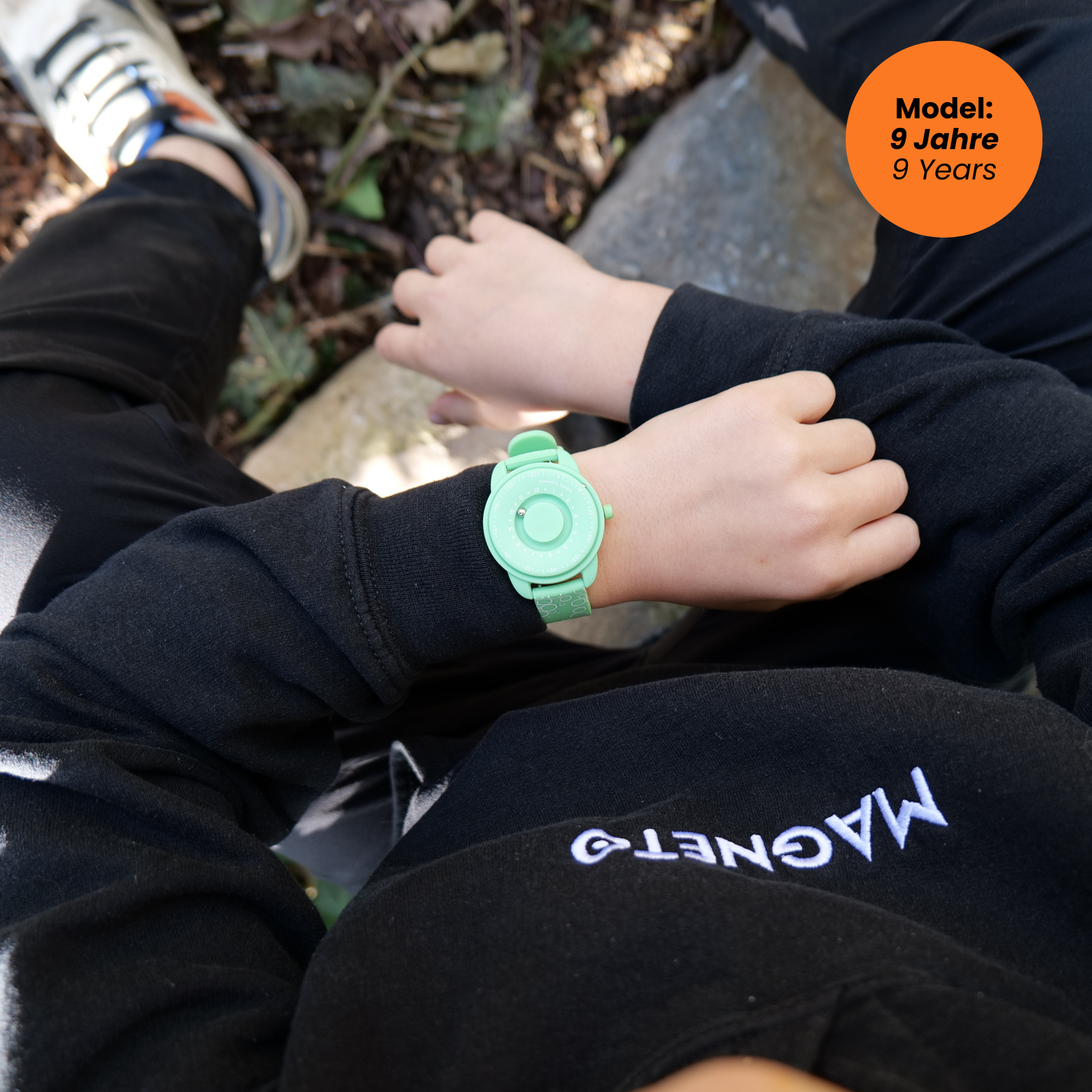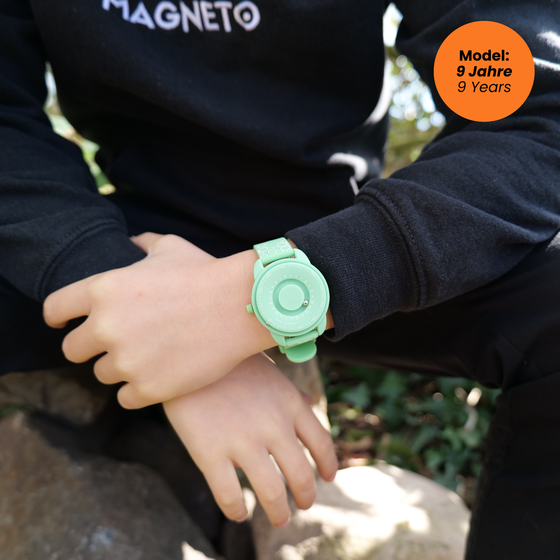 Bubbles Green von Magneto Watch bringt eine frische Farbnote an jedes Kinderhandgelenk. Zwei Magnetkugeln – eine größere Innenkugel für die Stunden und eine kleinere Außenkugel für die Minuten – sorgen für ein außergewöhnliches Zeitablesen, das neugierige Blicke auf sich zieht. Das robuste Kunststoffgehäuse (ABS) ist angenehm leicht, während das grüne Silikonarmband mit blasenartigem Print an Seifenblasen erinnert. So wird das Erlernen der Uhrzeit zu einem fröhlichen Erlebnis – und Kinder haben immer einen coolen Hingucker am Handgelenk.