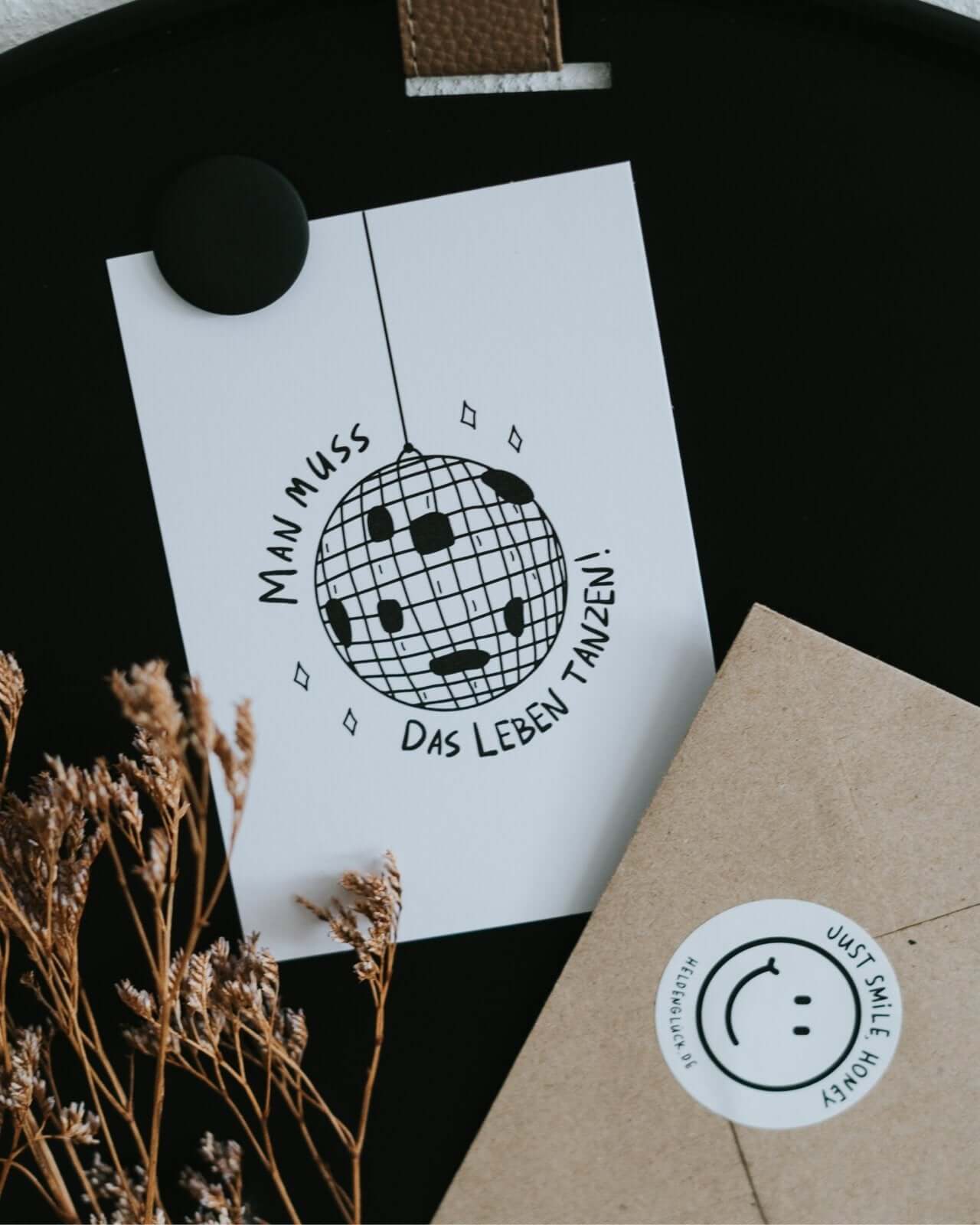 Stell dir vor, du schickst einem Herzensmenschen genau diese Botschaft: „Man muss das Leben tanzen.“ Eine Karte, die Mut macht, loszulassen – und das Leben zu feiern, wie es ist. Ideal als Geschenk für Freund:innen zum Geburtstag, als motivierender Reminder für dich selbst oder als kleine Aufmunterung im Alltag. Der stilvolle Spruch trifft ins Herz und inspiriert zum Mitwippen – auch an grauen Tagen. Produziert auf 400 g FSC-zertifiziertem Naturpapier, klimabewusst und mit viel Liebe in Deutschland gefertigt. Viele Heldenglück-Fans schätzen genau diese Mischung aus Design, Nachhaltigkeit und Gefühl – du vielleicht auch bald?