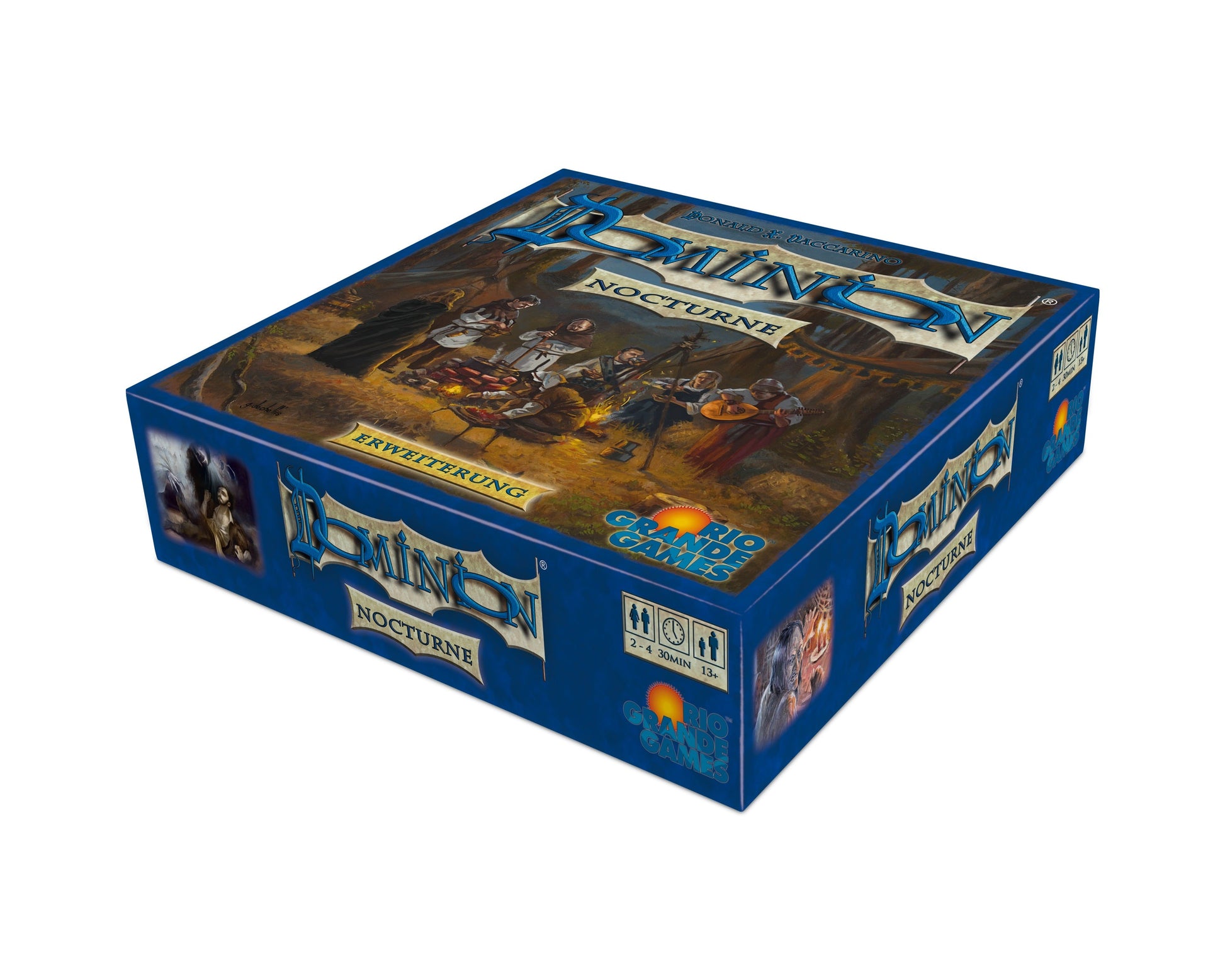 Du warst schon immer eine Nachteule, seit Kurzem überlegst du sogar, zum Vampir zu werden. Es gibt eine Menge Vorteile: du alterst nicht, du musst dich nicht mehr selbst in Spiegeln sehen; wenn jemand von dir verlangt, dass du etwas bestimmtes erledigst, kannst du dich in eine Fledermaus verwandeln und dann sagen: „Tut mir leid, ich bin eine Fledermaus.“ Es gibt aber wahrscheinlich auch ein paar Nachteile. Du musst an die Statue auf dem Dorfplatz denken, die lebendig wurde und jetzt in der Taverne als Schankmaid arbeitet. Dabei ist auch der Sockel lebendig geworden, so dass sie sich nur hüpfend fortbewegen kann. Der Dorfschmied verwandelt sich bei Vollmond in einen Wolf, bei Halbmond in einen Chihuahua. So funktioniert das nun mal. Und dennoch, wenn du die Nachtluft einatmest, fühlst du dich für alles bereit, was da kommen mag. Dominion: Nocturne, die 11. Erweiterung für Dominion, beinhaltet 500 Karten, mit 33 neuen Königreichkarten. Außerdem gibt es Nachtkarten, die nach der Kaufphase gespielt werden. Erbstücke ersetzen das Kupfergeld vom Spielbeginn. Schicksals- und Verderbenskarten bringen Segen und Verwünschungen. Und es gibt eine Reihe von weiteren Karten, die durch bestimmte Auslöser ins Spiel kommen.