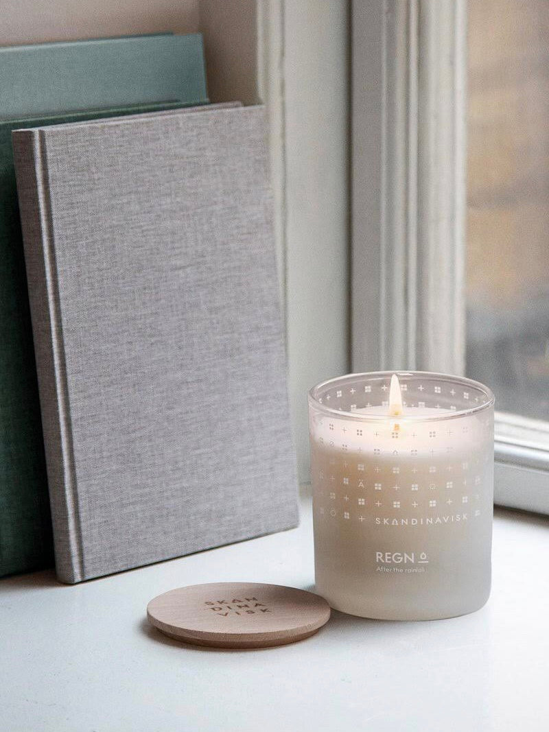 Duftkerze, hergaus Wachs aus schwedischer Rapssaat mit Baumwolldocht und mit natürlichen Geruchsstoffen. Erfrischende Duftnoten von Pfingstrosen, feuchtem Gras, Erde und Kieselsteinen nach einem Sommerregen, wenn die Natur wieder erwacht. Im dekorativen, bemalten Glasgefäß mit Buchenholzdeckel. Dekorative Verpackung, ideal auch zum Verschenken.