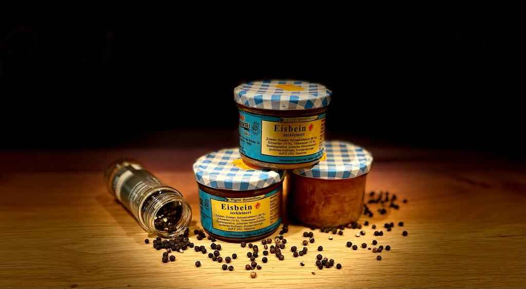 Das Eisbein im Glas der Metzgerei Bechtel bringt den herzhaften Geschmack traditioneller nordhessischer Küche direkt auf Ihren Tisch. Zartes, sorgfältig gegartes Schweinefleisch, mit feinen Gewürzen veredelt und schonend im Glas eingekocht, macht diese Spezialität zu einem unvergleichlichen Genuss für alle, die echte Hausmacher Wurst und deftige Gerichte schätzen.