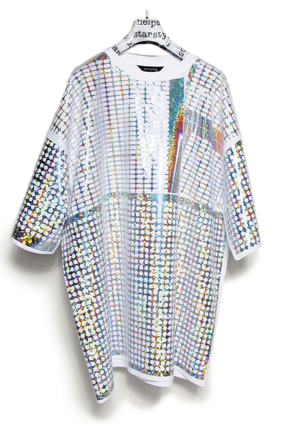 Unisex Bigshirt with sparkling-mirror-multipattern foilprint allover.