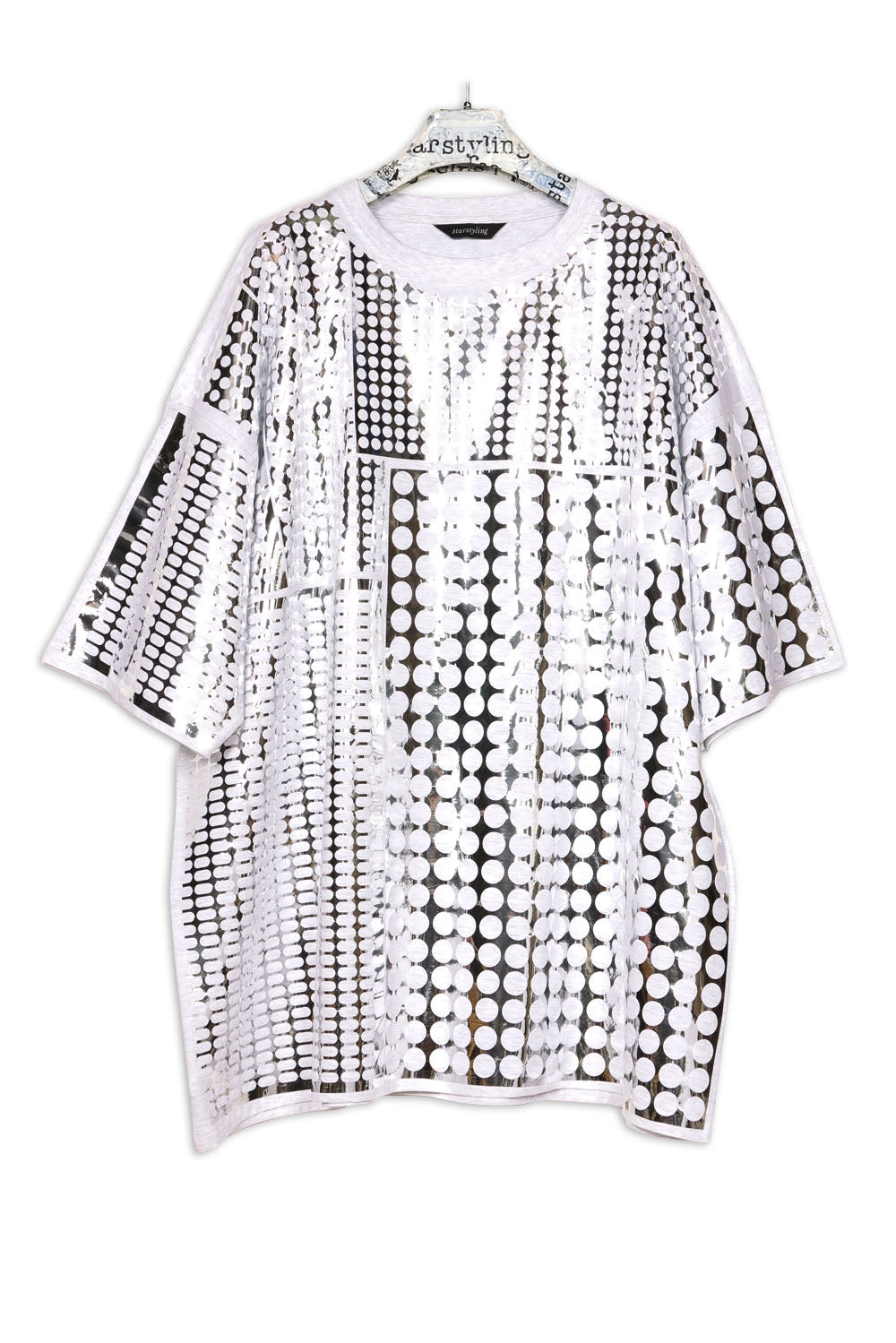 Unisex Bigshirt with silver-mirror- multipattern foilprint allover.