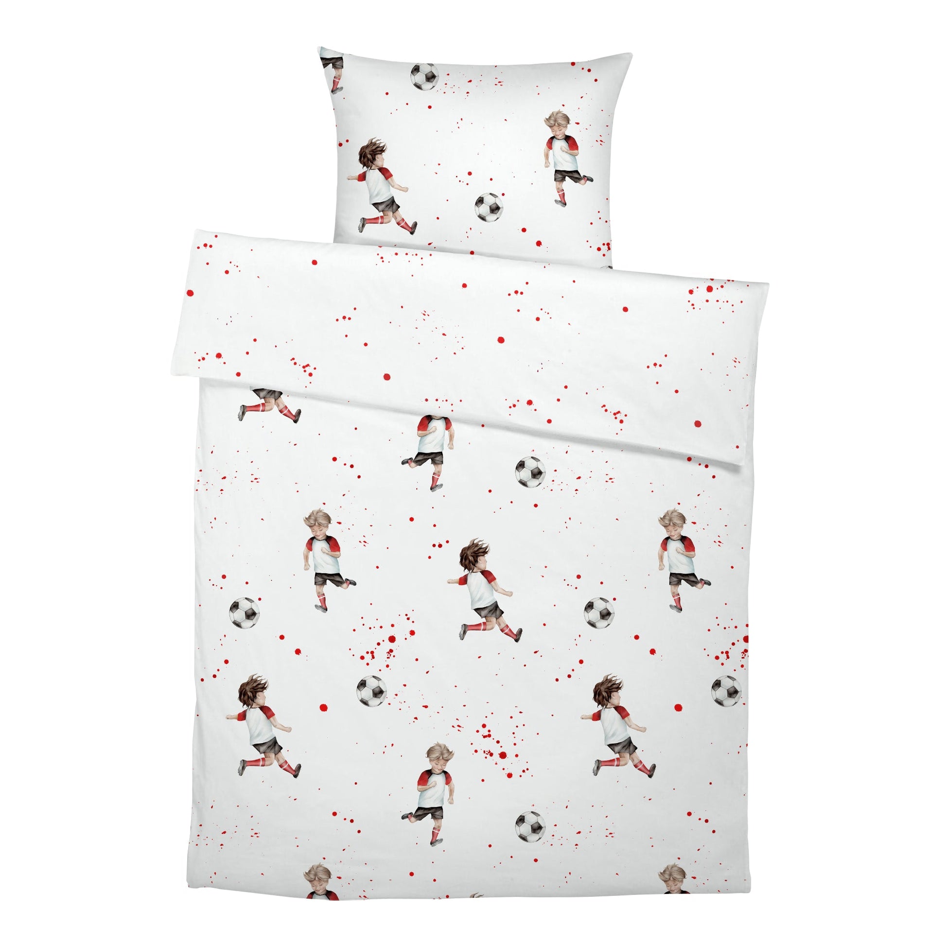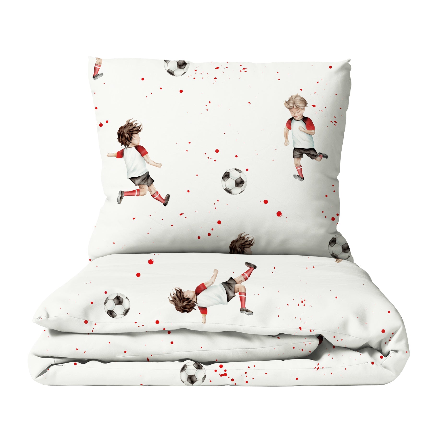 Auf ins Sommermärchen: Das Design mit den fröhlichen Fußballspielern nimmt dein Kind mit auf ein aufregendes Spiel durch die bunte Welt des Fußballs. Mit einem dynamischen Fußball-Motiv bringt diese Bettwäsche Energie, Teamgeist und Spielfreude direkt ins Schlafzimmer deines kleinen Torjägers. Jede Nacht wird zu einem spannenden Match auf dem Spielfeld der Träume!