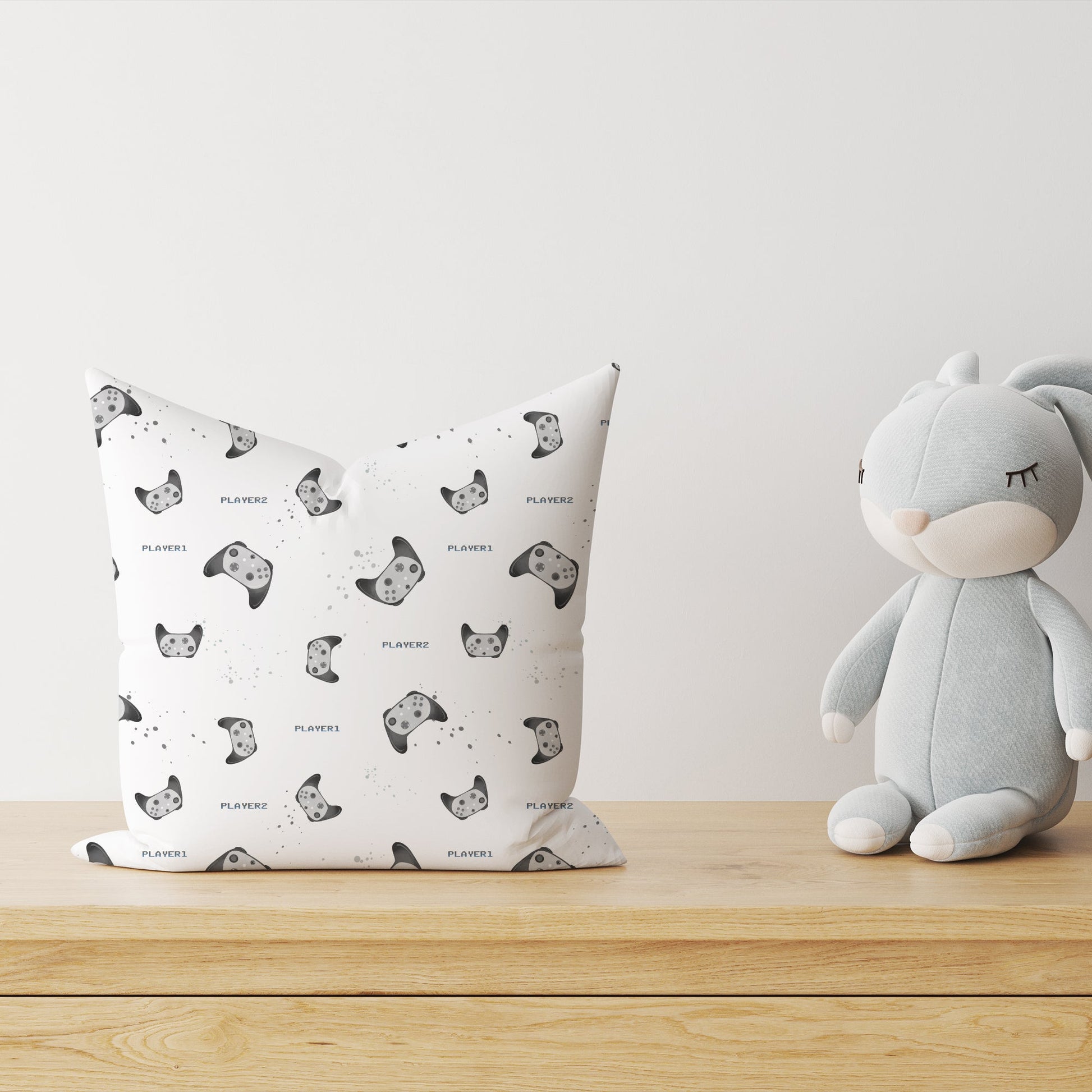 Game on: Das „Gamer“ Dekokissen verwandelt das Kinderzimmer in eine coole Zockerzone! Mit seinem detailreichen Design aus pixeligen Game-Icons, leuchtenden Neon-Elementen und stylischen Controllern ist es ein echter Hingucker für alle kleinen und großen Gaming-Fans.