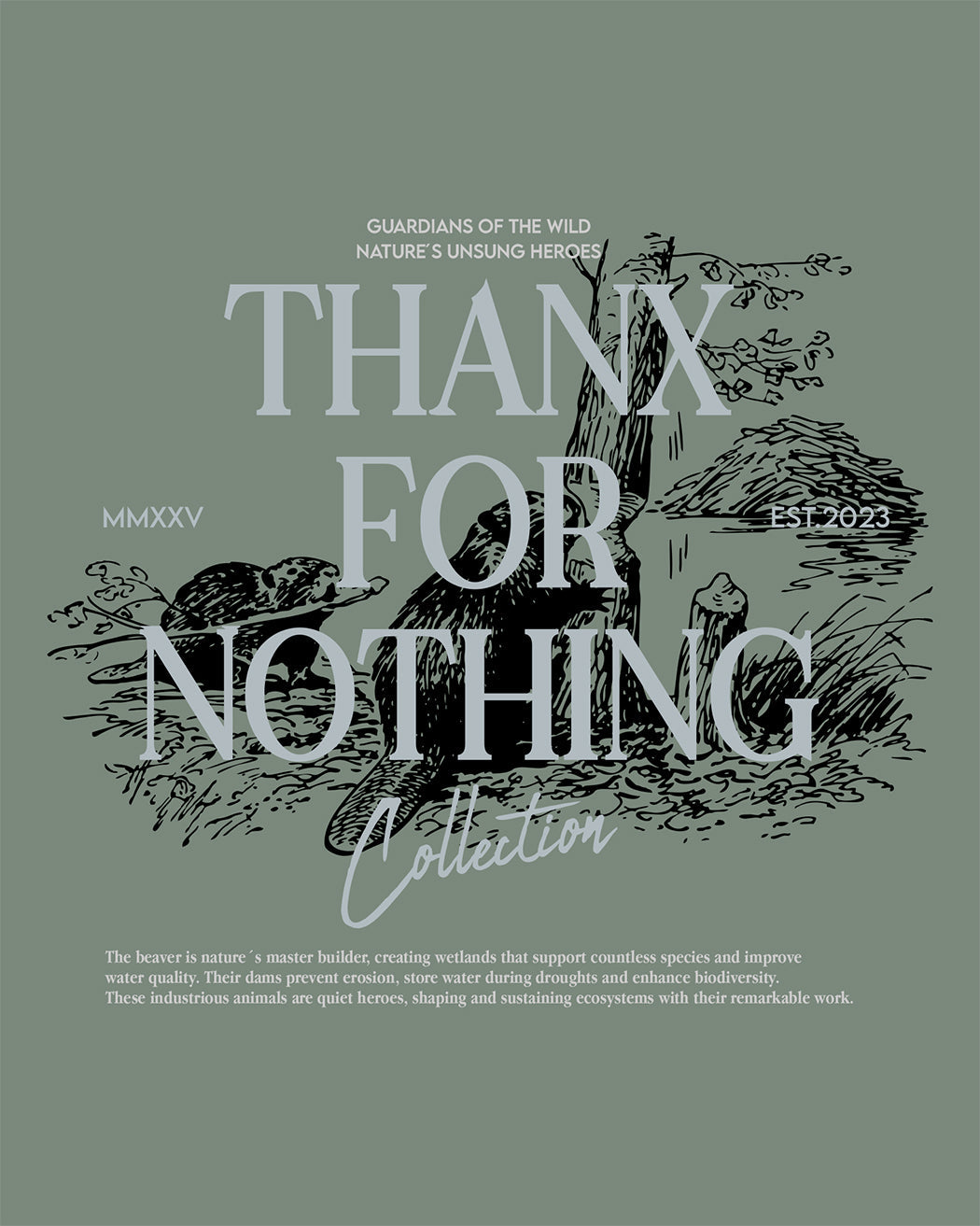 Dieses Design, gedruckt auf nachhaltig produzierten, veganen und PETA-zertifizierten Shirts und Sweatern, verbindet urbane Ästhetik mit einer wichtigen Botschaft: Dankbarkeit für die Natur und ihre stillen Helden.