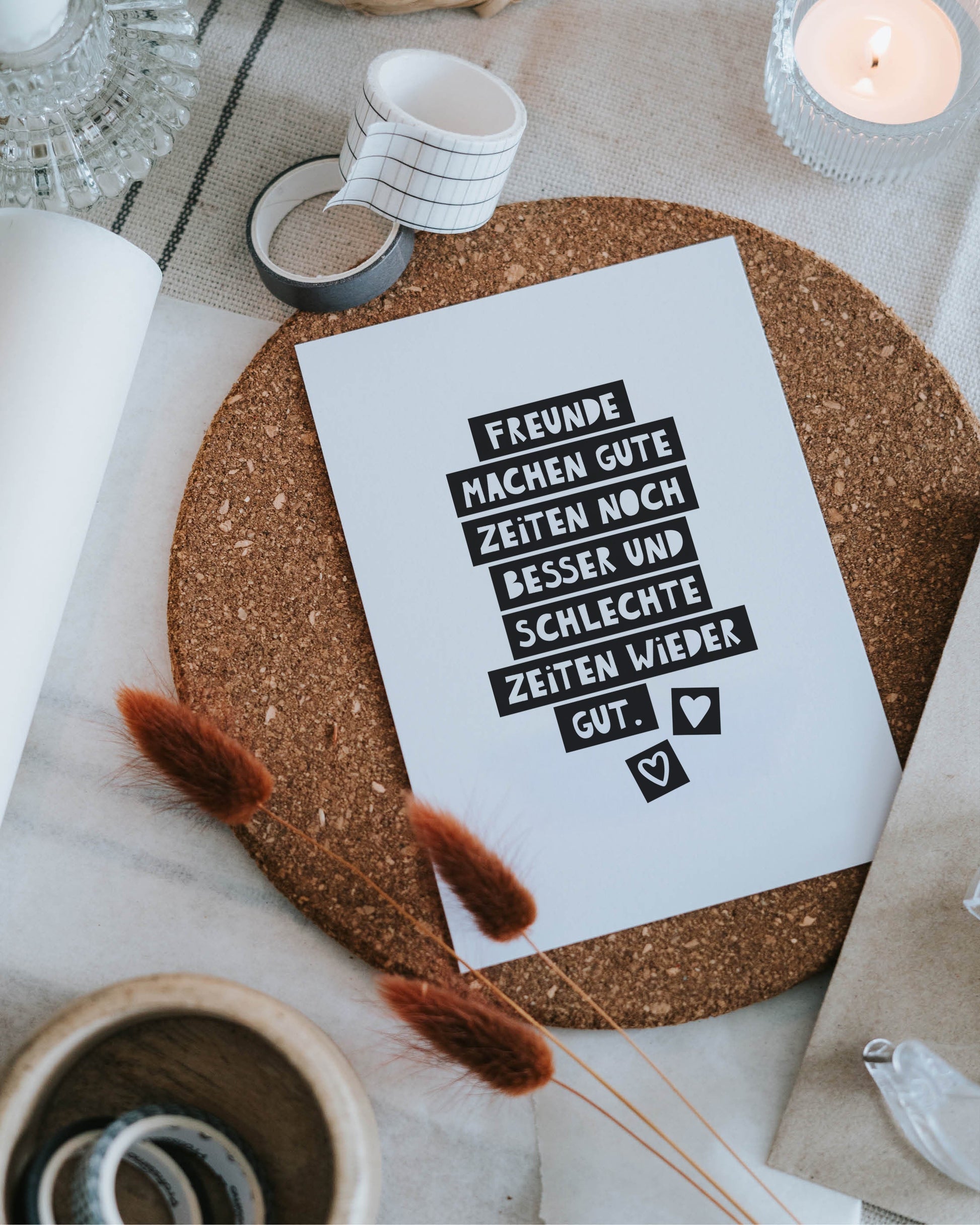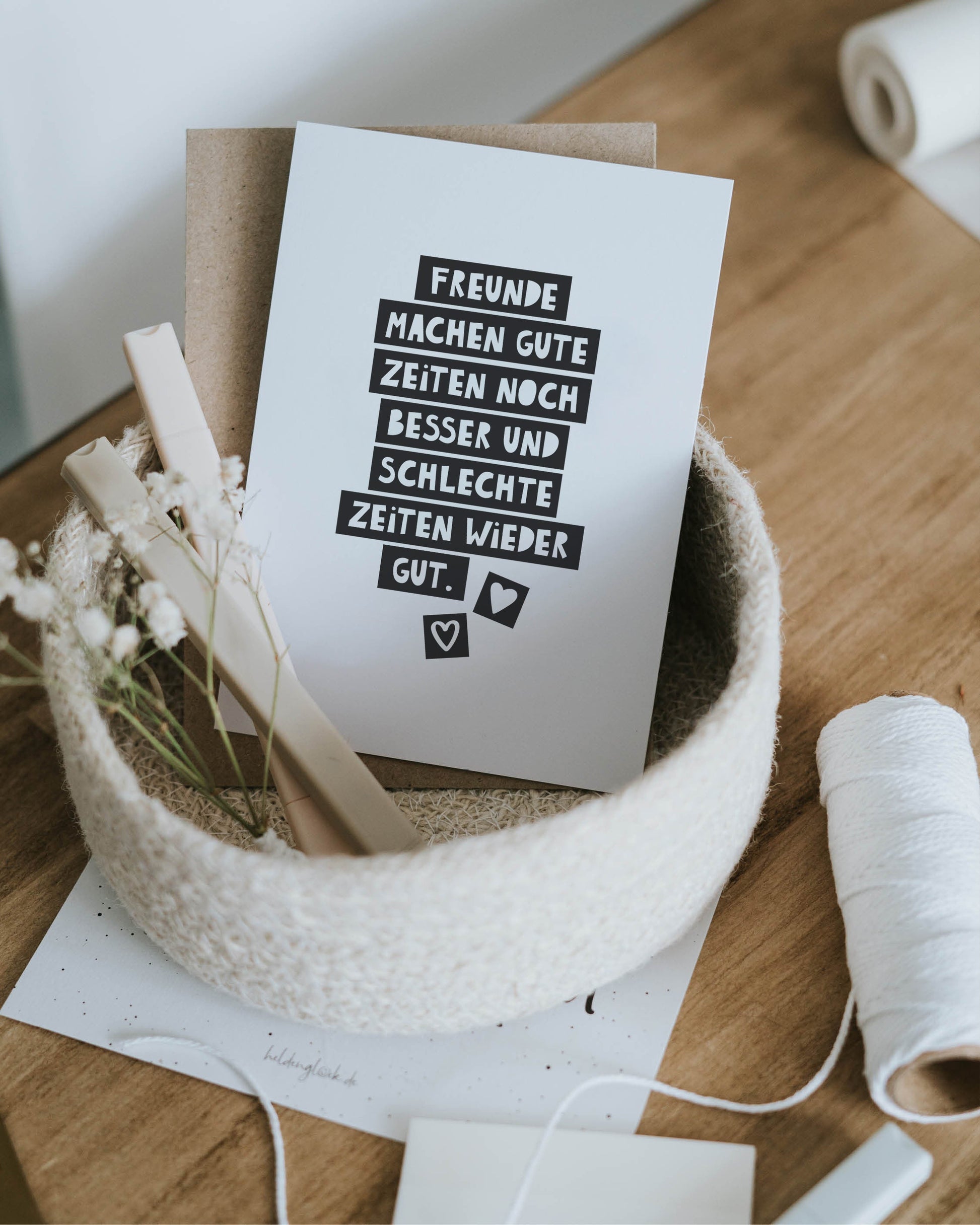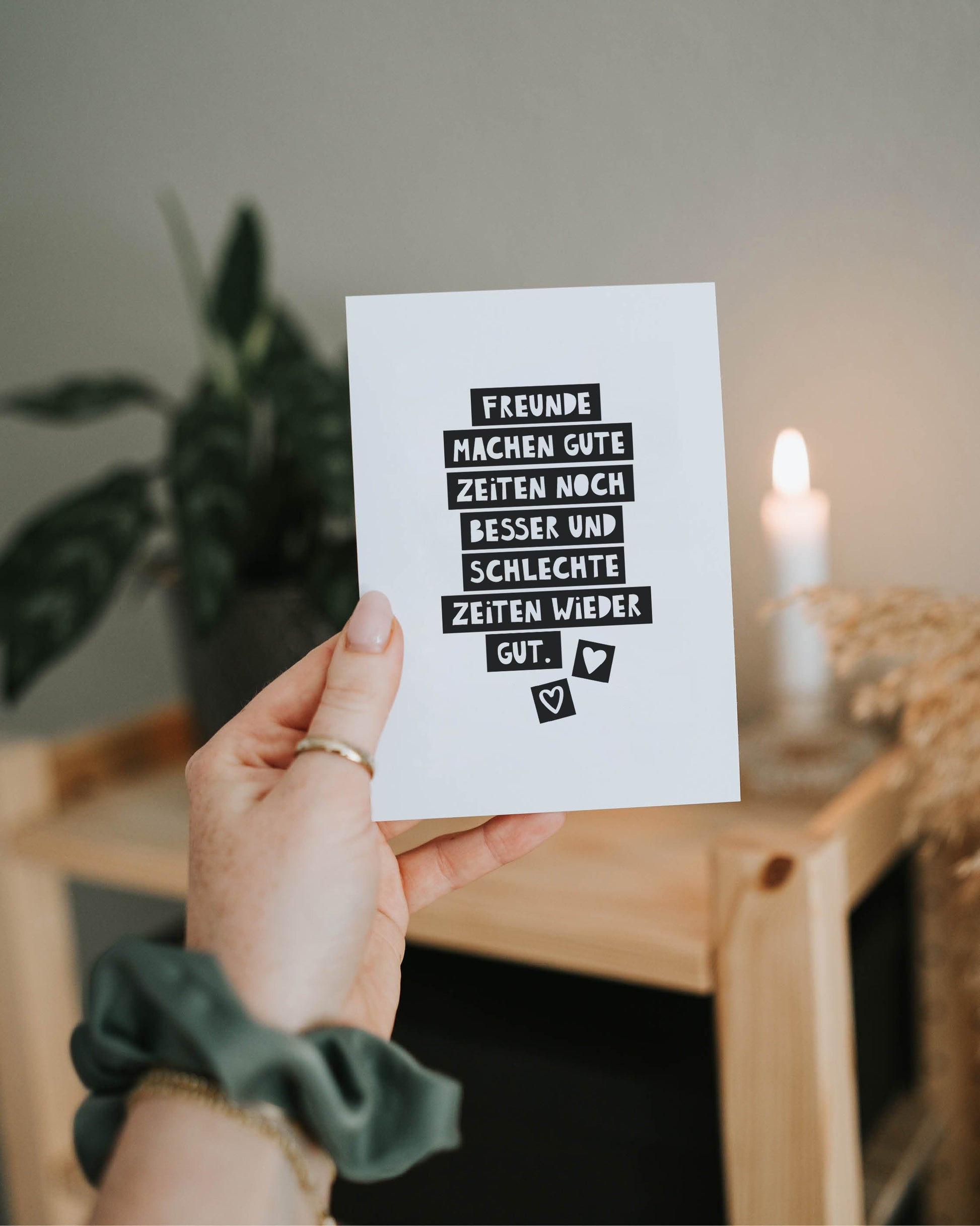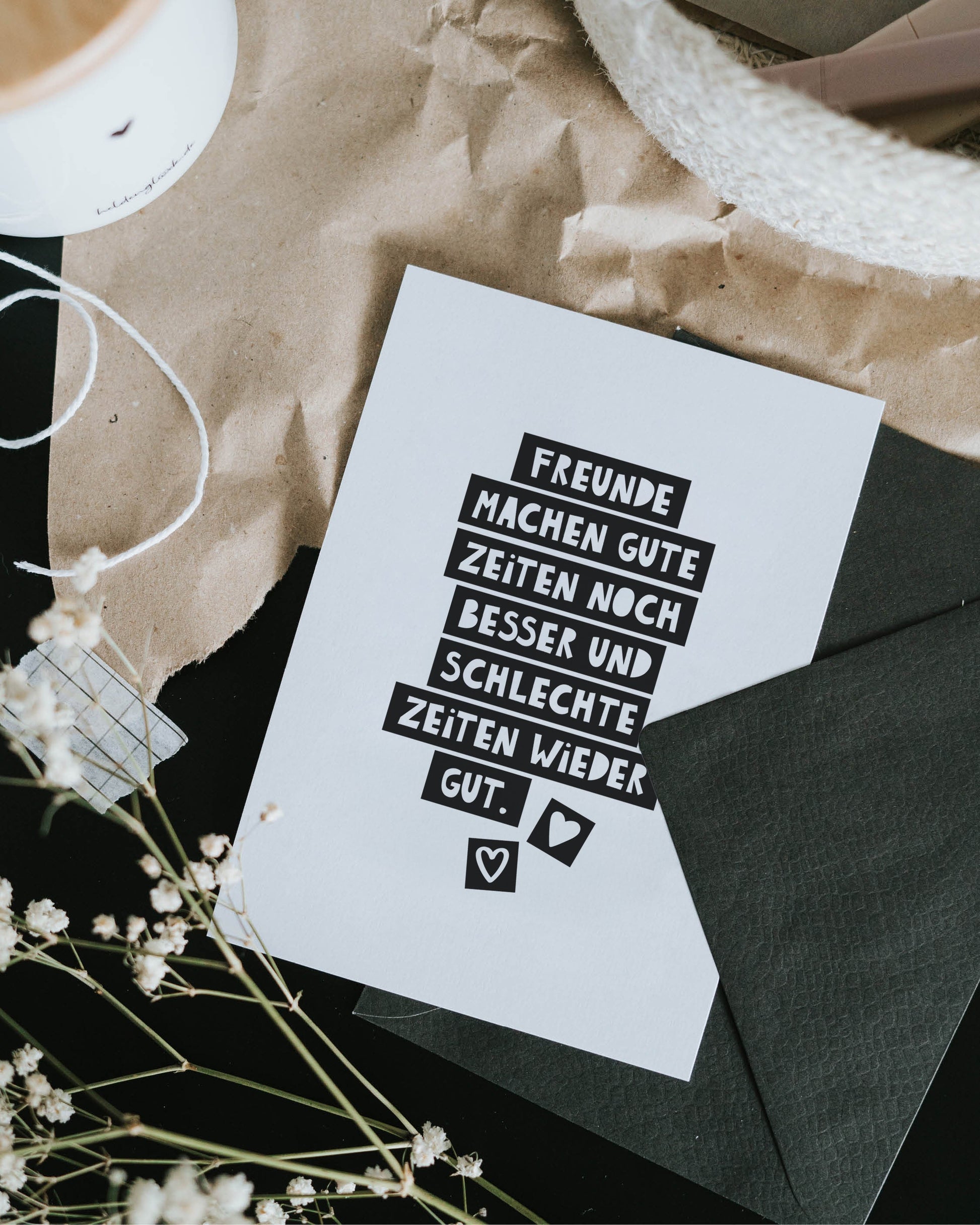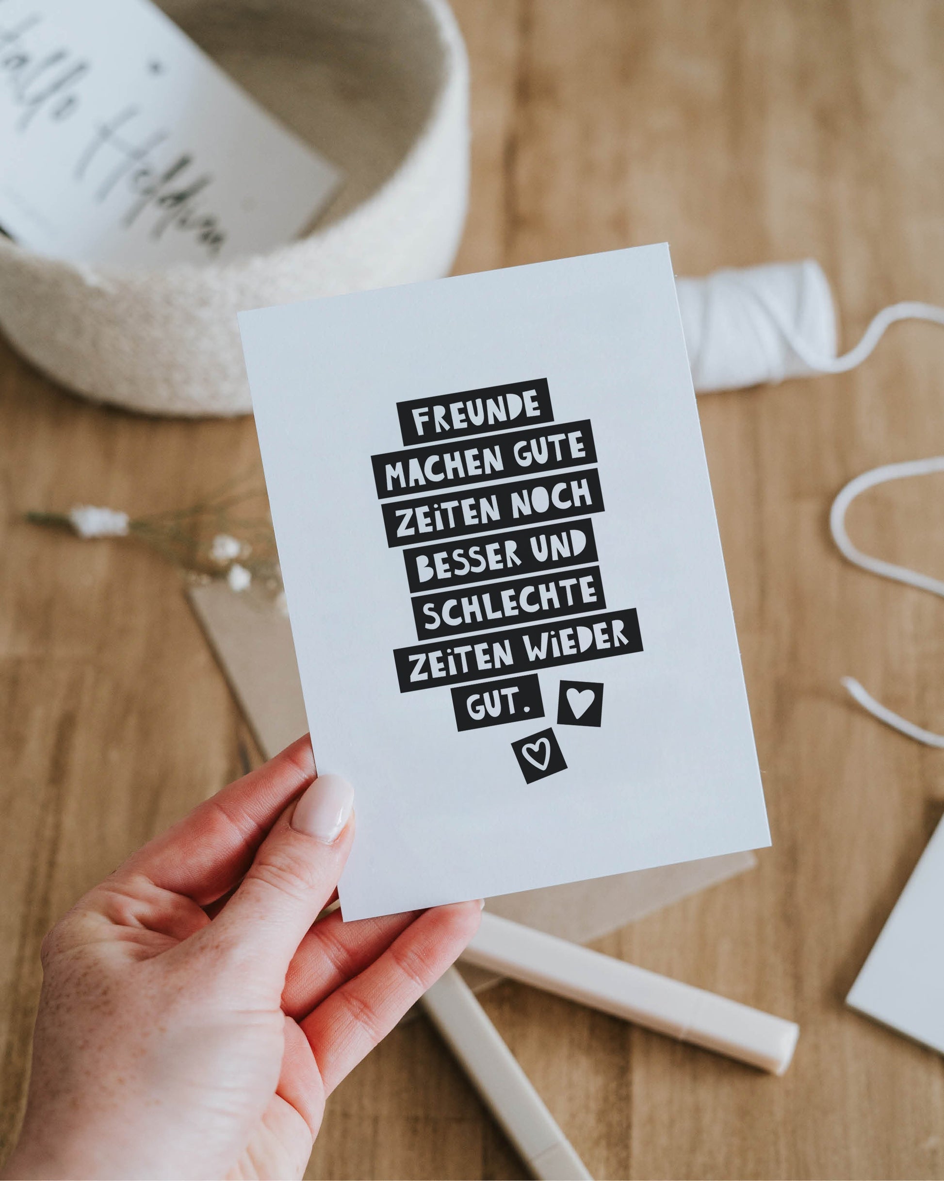 Stell dir vor, du willst einer Freundin einfach mal Danke sagen. Fürs Dasein. Fürs Mitfühlen. Für all die kleinen und großen Momente. Diese Postkarte bringt es auf den Punkt: Gute Zeiten werden durch Freundschaft noch schöner – und schwere Zeiten ein bisschen leichter. Als kleine Geste zwischendurch, zum Geburtstag oder einfach nur so – diese Karte zeigt, was zählt: Zusammenhalt, Wärme und echtes Miteinander.