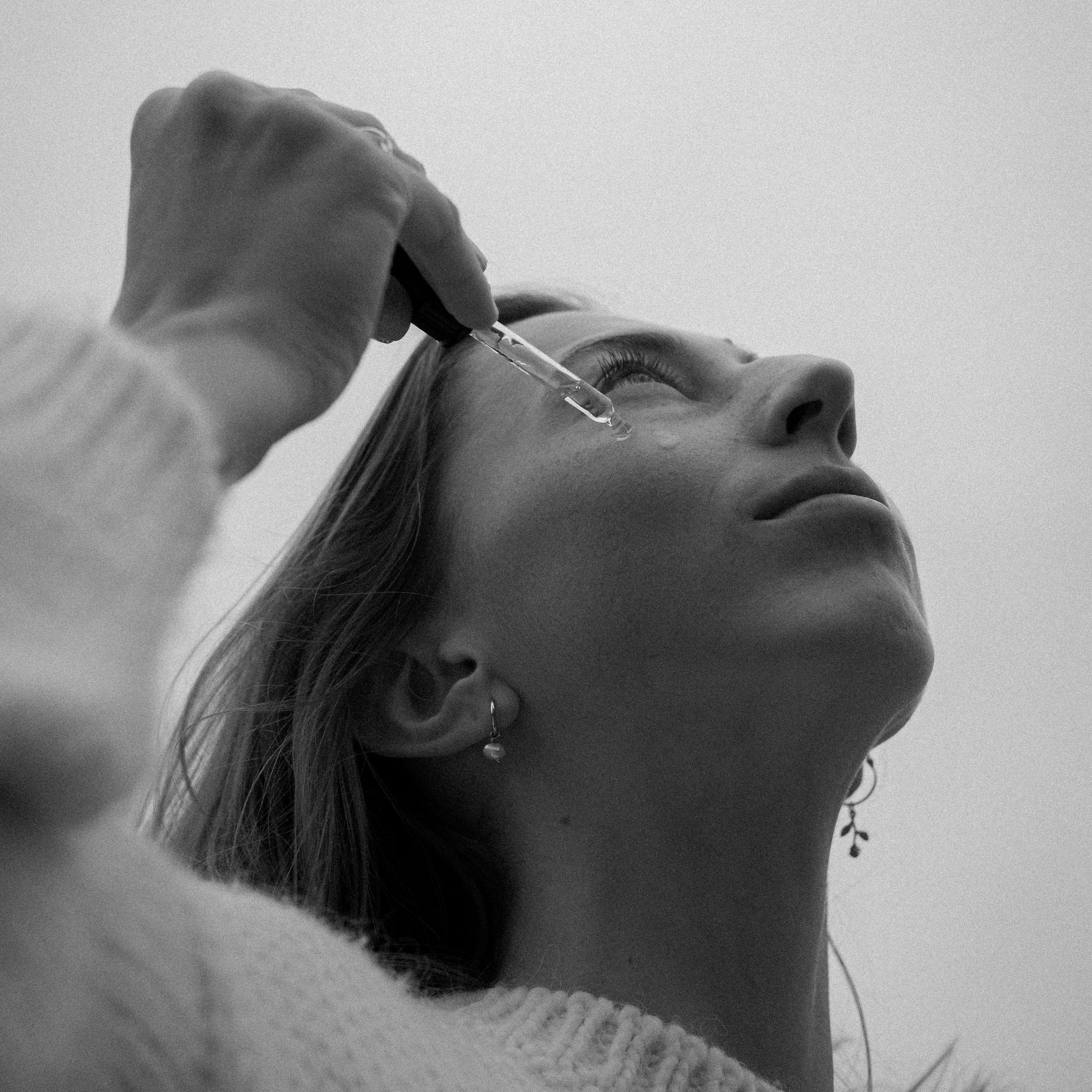 Gib je einen Tropfen Serum auf deine Stirn und beide Wangen. Nun massierst