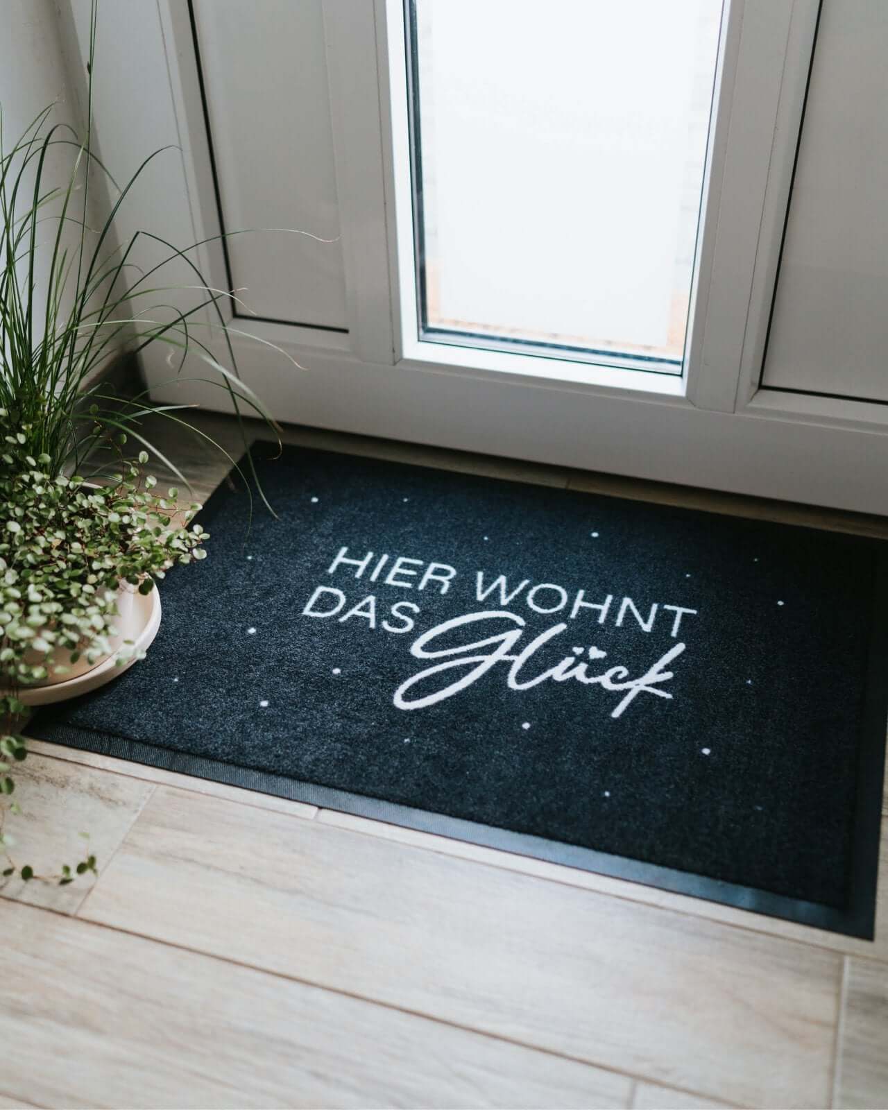 Fußmatte „Hier wohnt das Glück“ – liebevoll begrüßt & gut angekommen