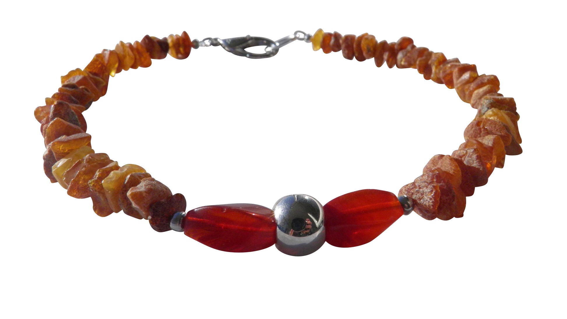 Naturbernstein ist ein unbehandelter Rohstoff und kann brüchiger sein als polierte Varianten. Kleine Absplitterungen sind daher kein Mangel, sondern ein Qualitätsmerkmal echter Natursteine. Die Wirkung bleibt hiervon unberührt.