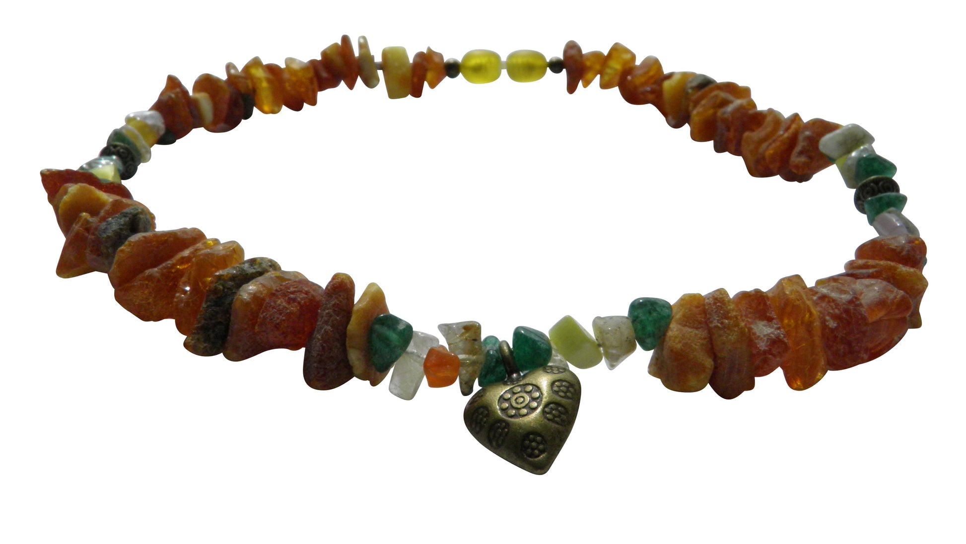 Hunde Bernsteinkette mit Edelsteinen Herzchen Länge 34cm