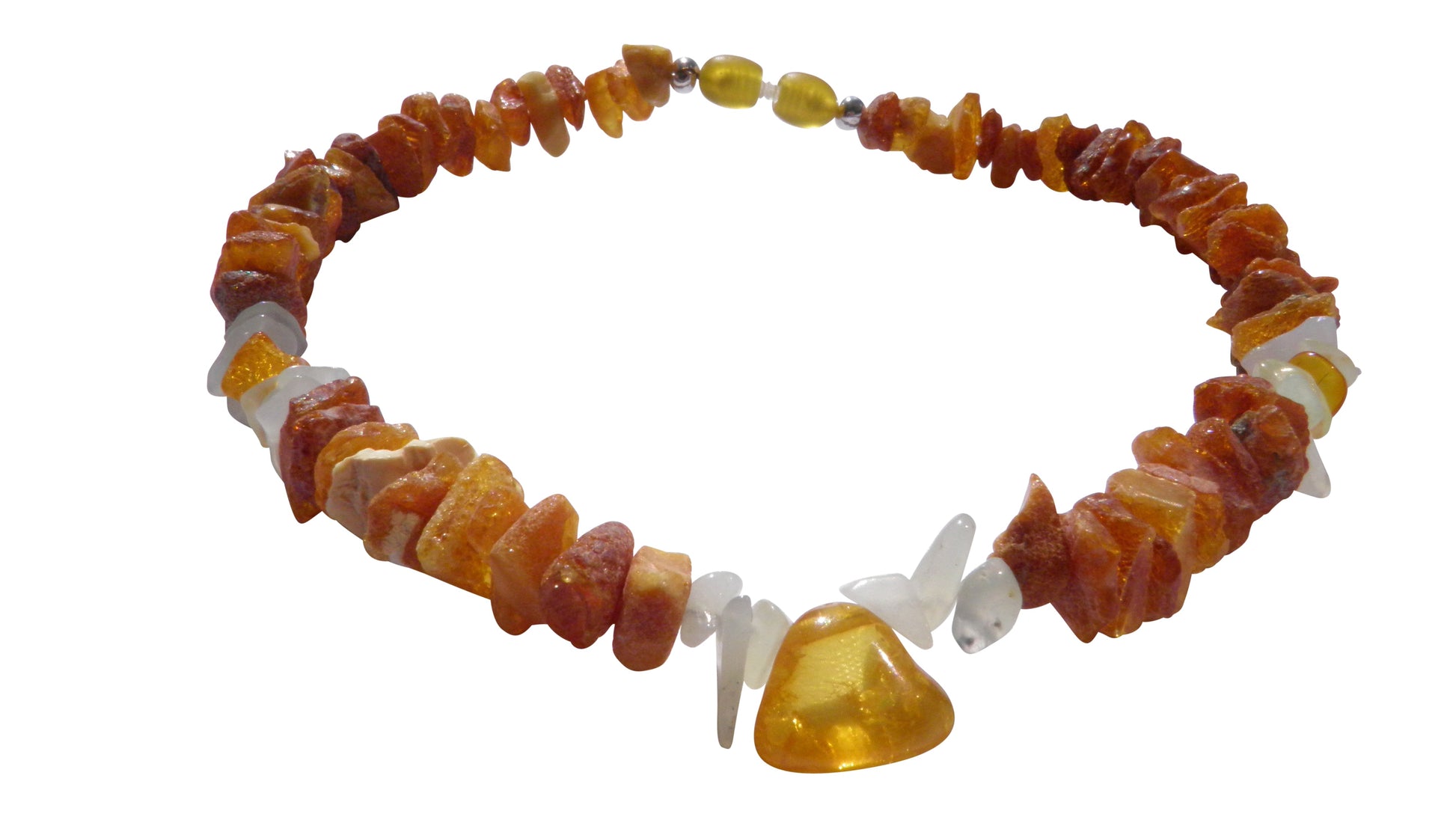 - Unbehandelter Naturbernstein ist bruchempfindlich; vereinzeltes Abbrechen einzelner Steinchen ist Zeichen echter Rohware, kein Mangel.