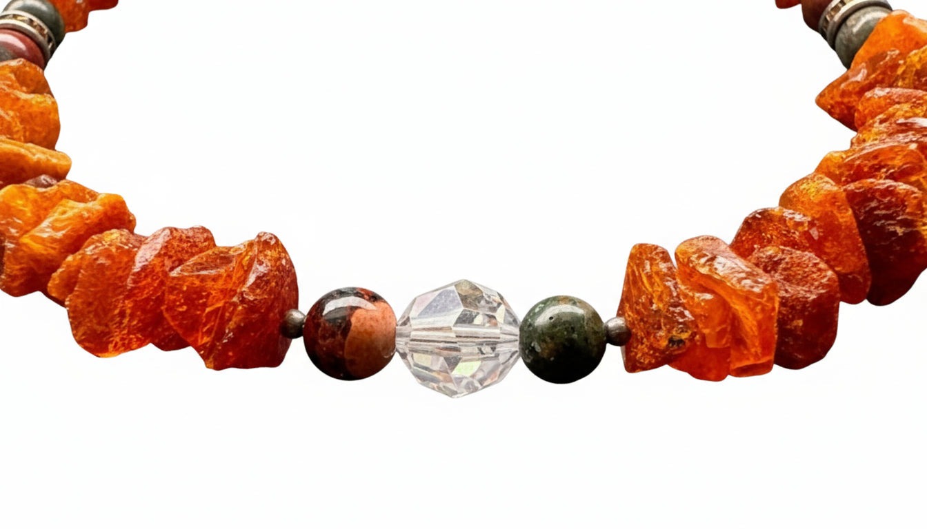 - Hinweis: Naturbernstein ist bruchempfindlich; vereinzelt abbrechende Steinchen sind Zeichen echter Rohware und kein Qualitätsmangel.