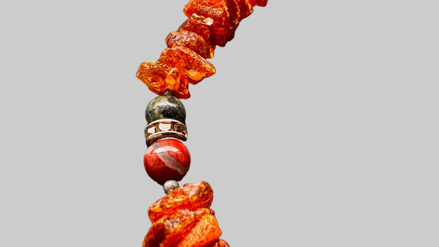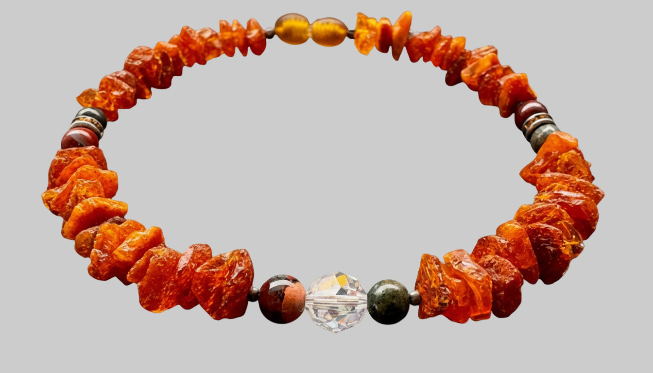 Entdecke unsere exklusive amberdog® Bernsteinkette, veredelt mit Jaspis.
