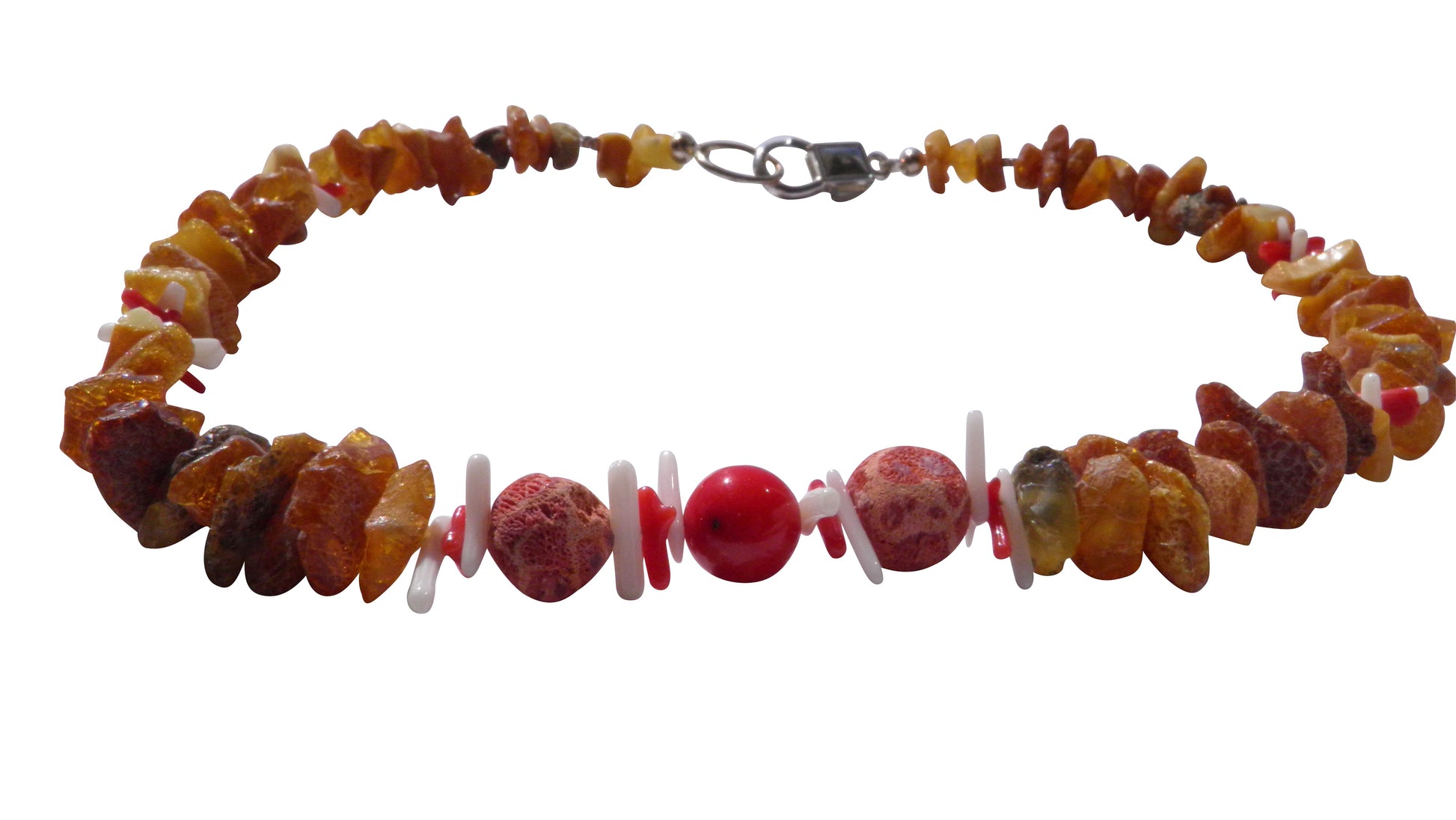 Material: Bernstein, Schaumkorallen, Korallen, Schmuckdraht