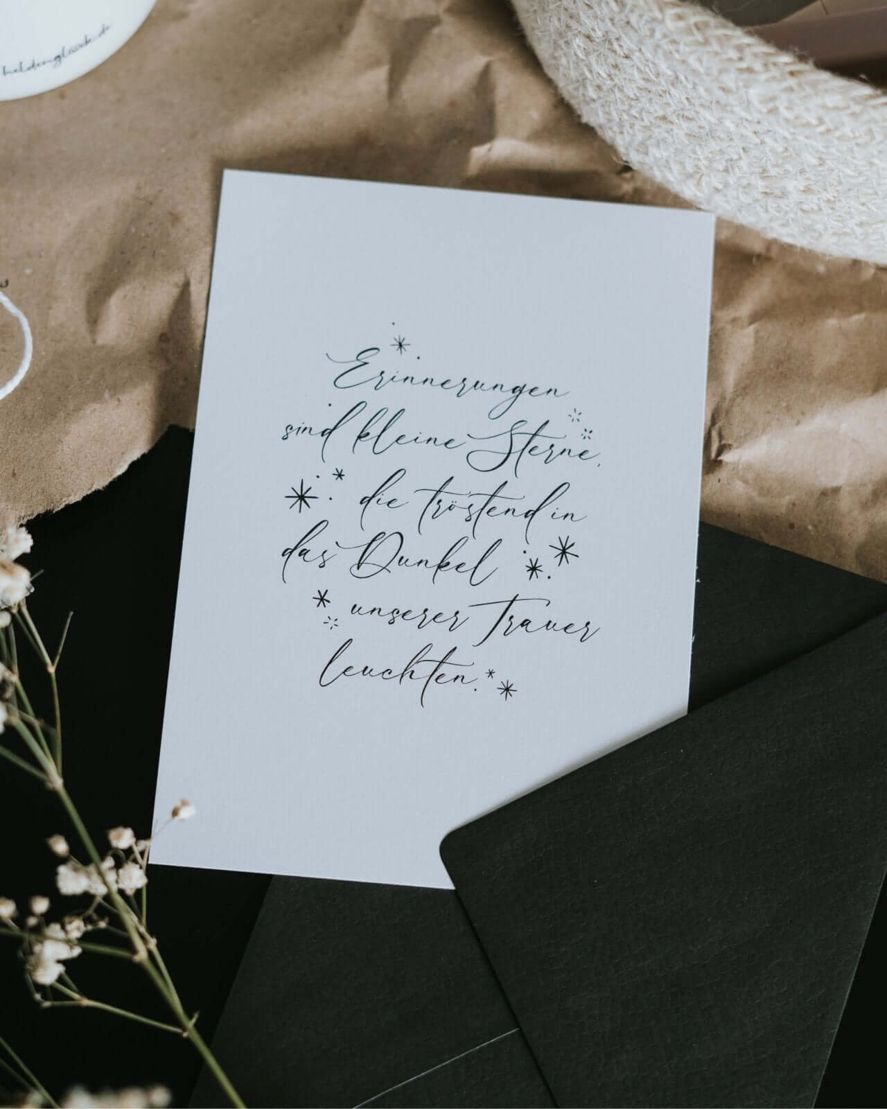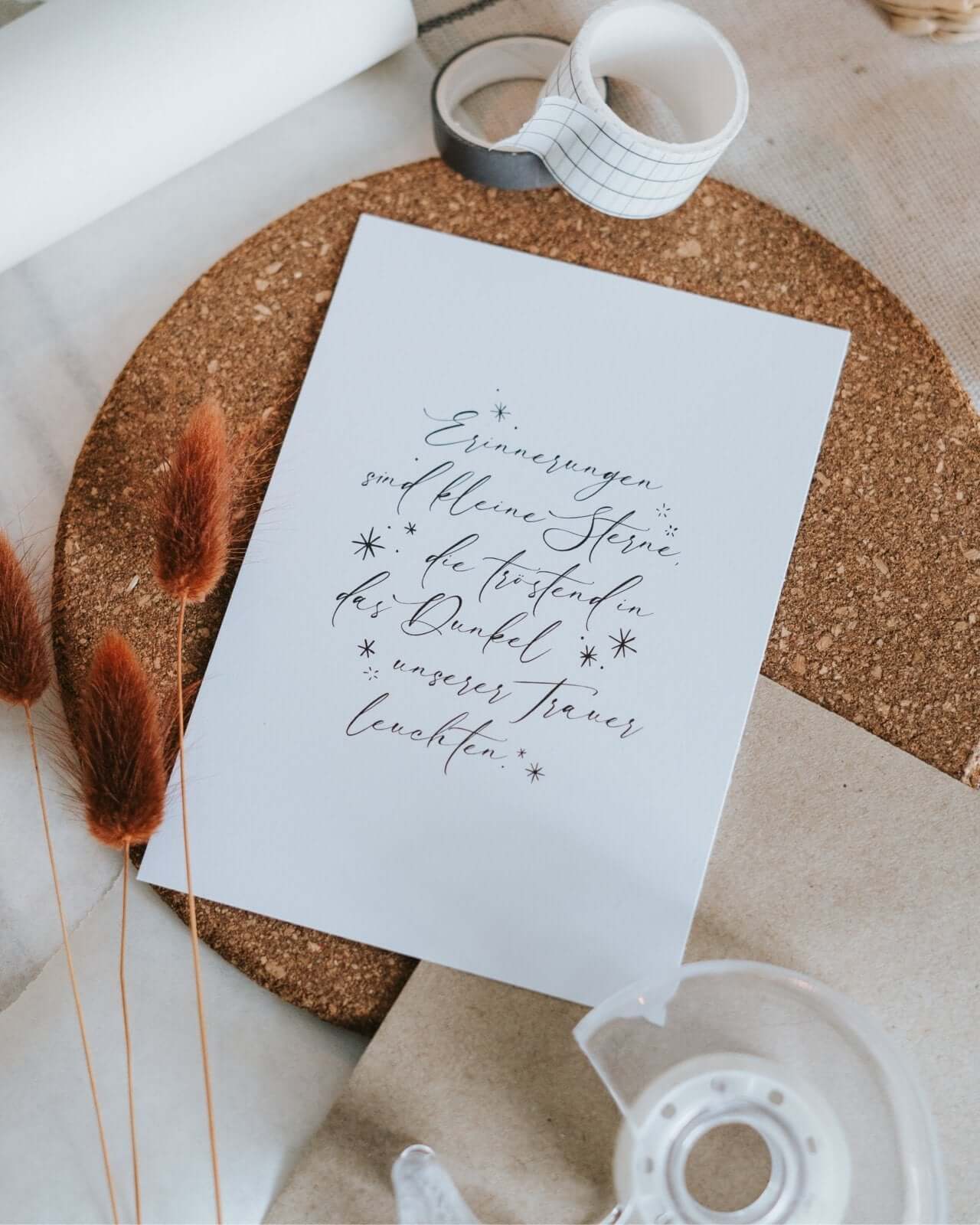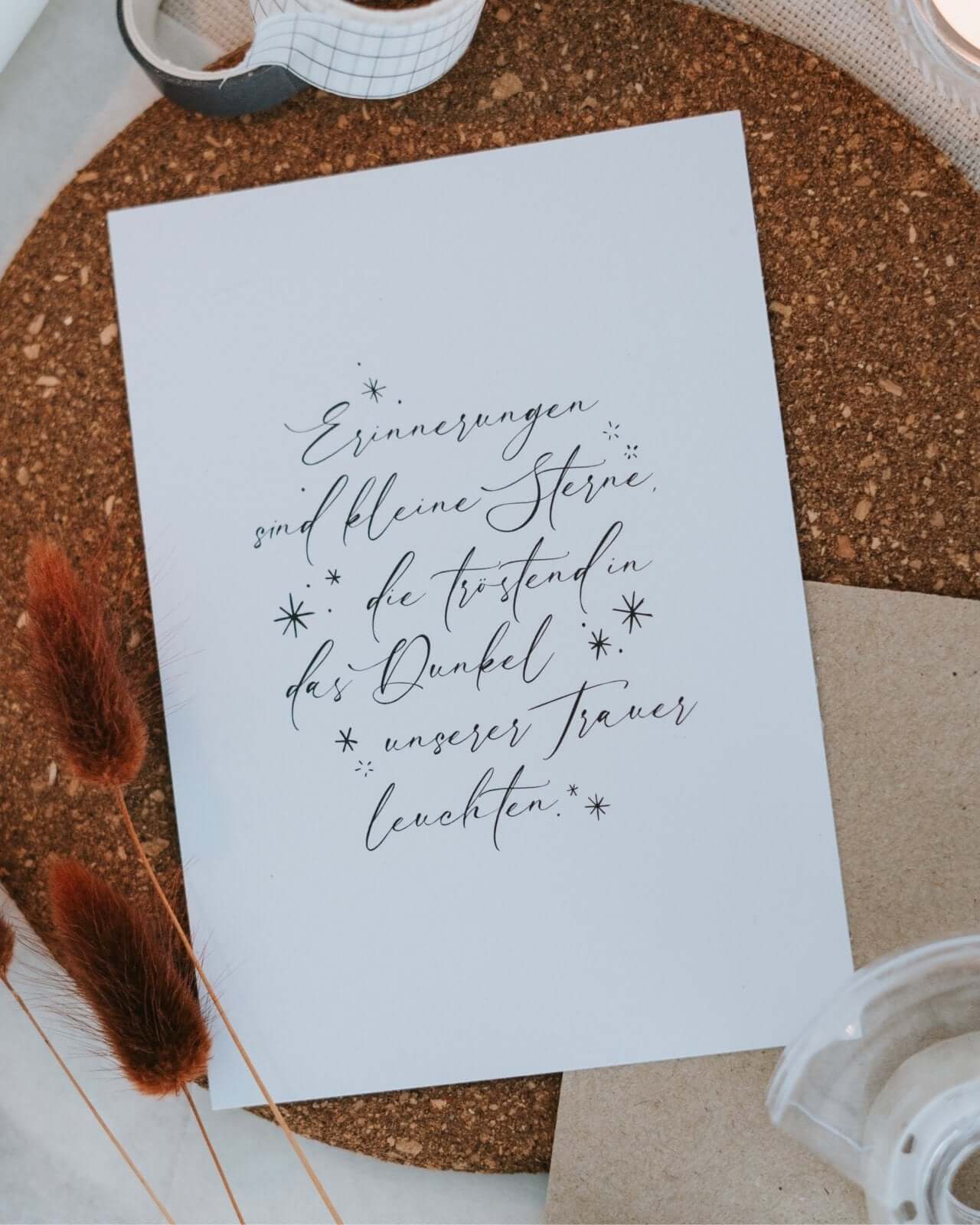 - Spruch: „Erinnerungen sind kleine Sterne …“ – poetisch & tröstlich