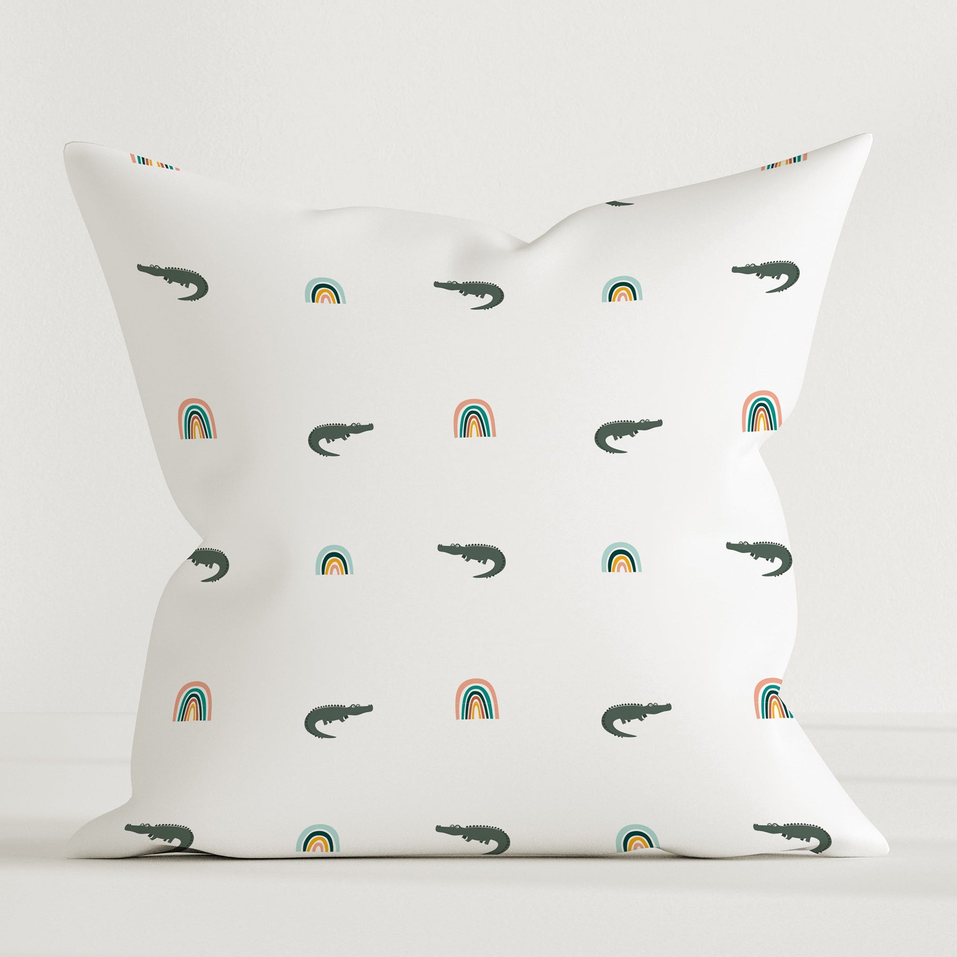 Exotischer Charme fürs Kinderzimmer: Das Dekokissen mit dem "Krokodile" Design bringt eine Portion wilden Dschungelflair mit. Die freundlich schauenden Krokodile laden zum Kuscheln und Geschichtenerzählen ein.