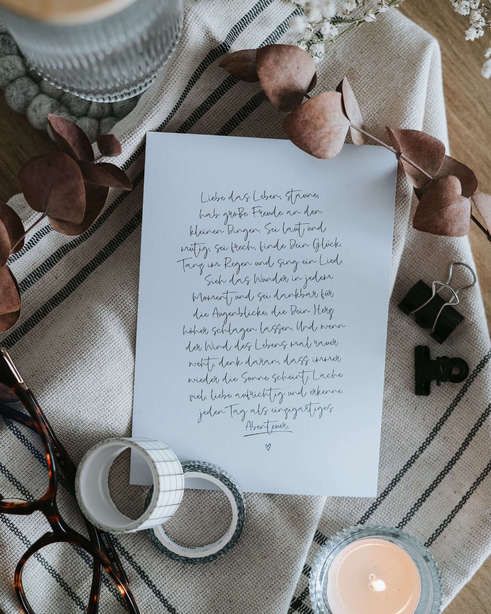 - Spruch: „Liebe das Leben“ – inspirierend, zeitlos & motivierend