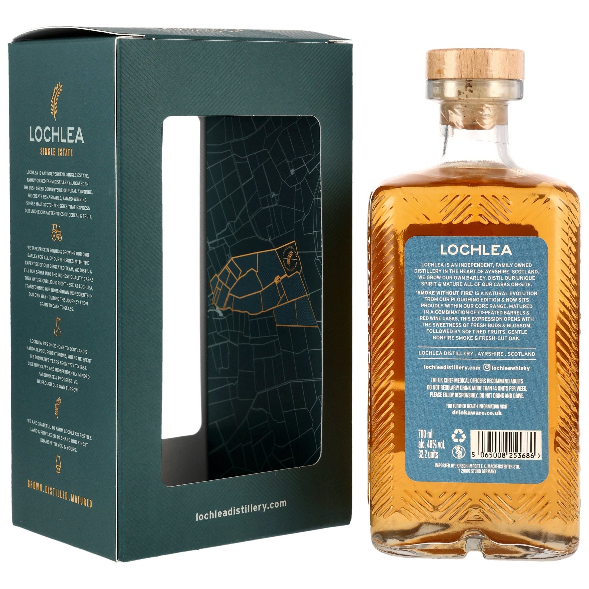 Für Smoke without Fire setzt Lochlea auf Ex-Peated Refill Bourbon Barrels und Red Wine Casks – wie im Vorbild, der einstigen Ploughing Edition. Er balanciert rote Früchte mit blumiger Süße und sanftem Lagerfeuerrauch und fängt so die subtile Komplexität des Torfeinflusses ein, ohne die natürliche Eleganz des Destillats zu überdecken.