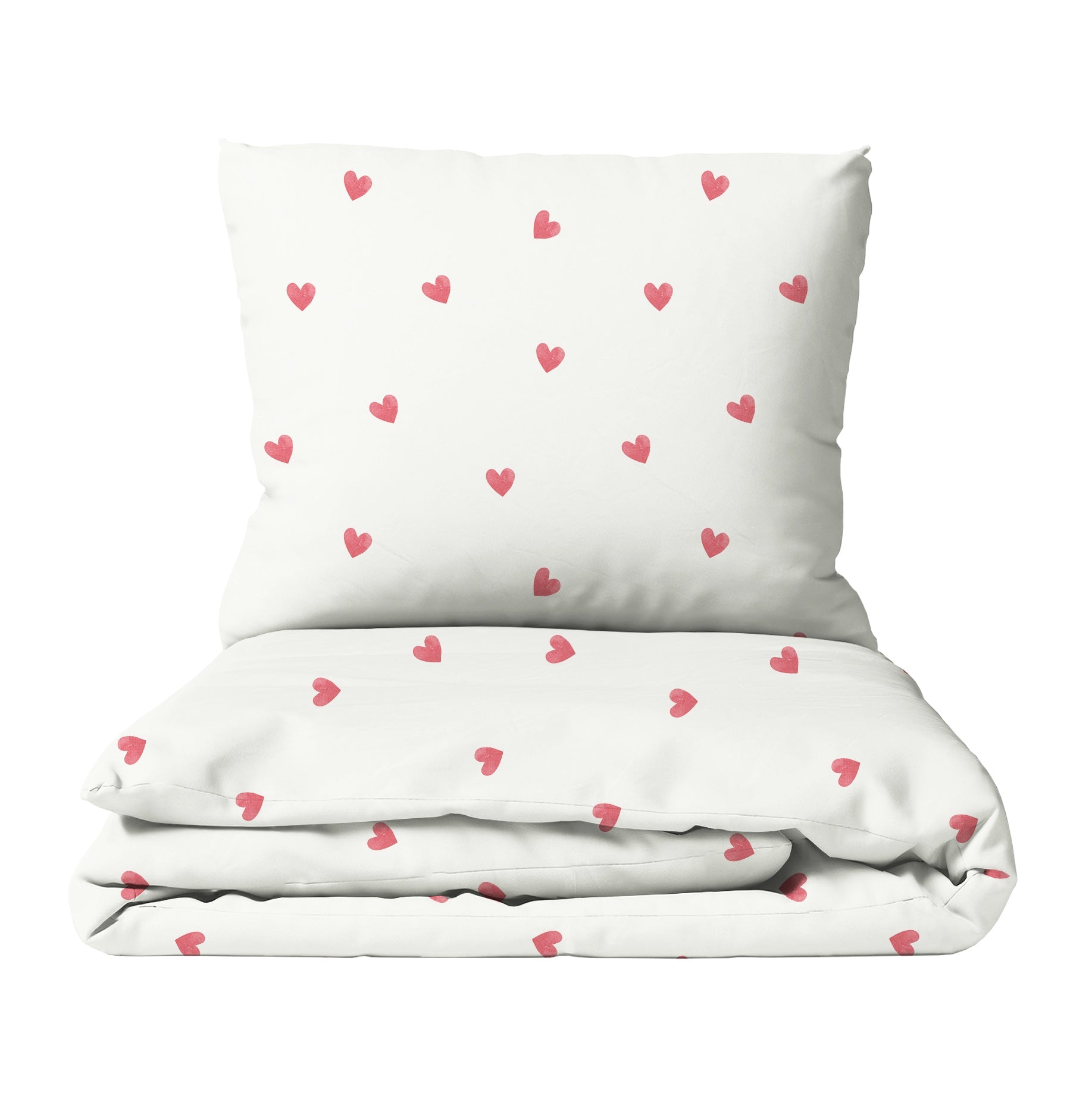 Herzchenzauber: Willkommen in einer Welt voller Geborgenheit und eine Atmosphäre der Wärme und Zärtlichkeit. Diese Bettwäsche aus feinster, reiner Baumwolle ist nicht nur ein Blickfang, sondern auch ein Garant für einen wohltuenden Schlaf. Das sanfte Design, das von kleinen Herzchen durchzogen ist, lädt zu gemütlichen Nächten und friedvollen Träumen ein. Perfekt für kleine Romantiker und Tagträumer, die sich in einer kuscheligen Umgebung rundum wohlfühlen möchten!