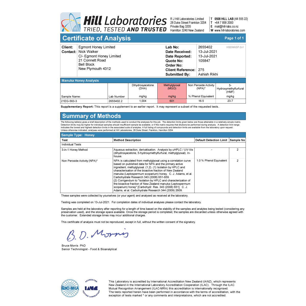 Der Egmont Honey 460+ weist einen MGO-Gehalt von mindestens 460 mg/kg auf. Mit diesem Methylglyoxal-Wert ist er der etwas stärkere Honig für den täglichen Genuss.