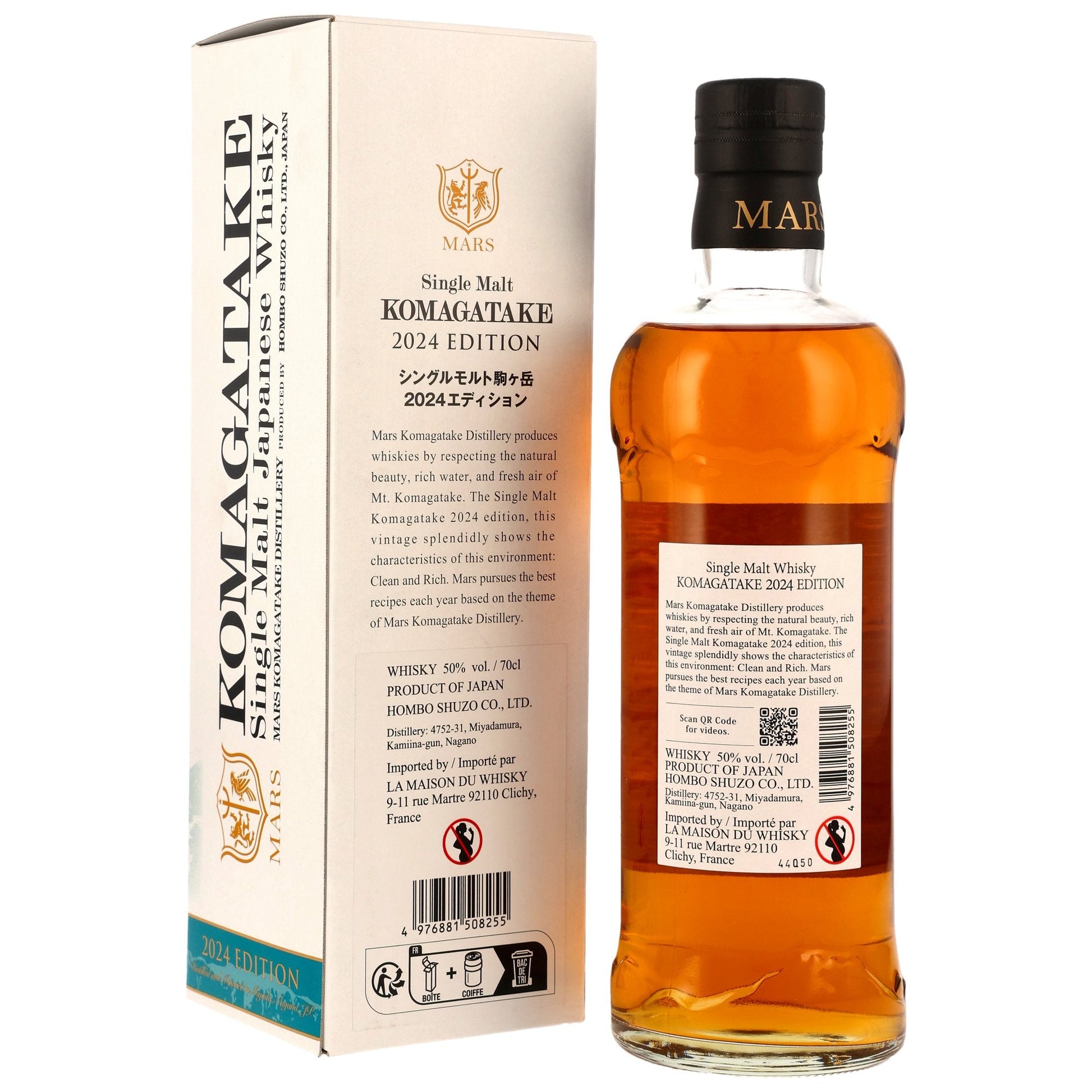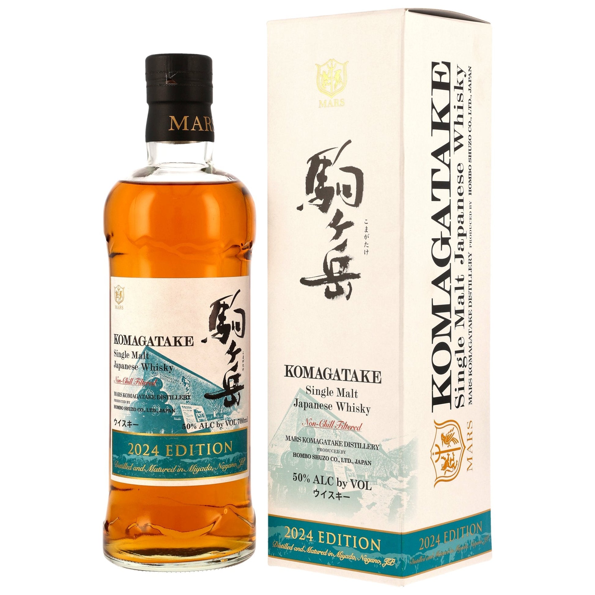Die Komagatake 2024 Edition gehört zu den edlen Sonderabfüllungen des Mars-Stammsitzes, der Brennerei Komagatake aus Japans Kiso-Gebirge. Der Single Malt vereint nach Vermählung aus Bourbon, Sherry und Wine Casks Noten von grünem Apfel, Honig und herzhaften Backwaren.