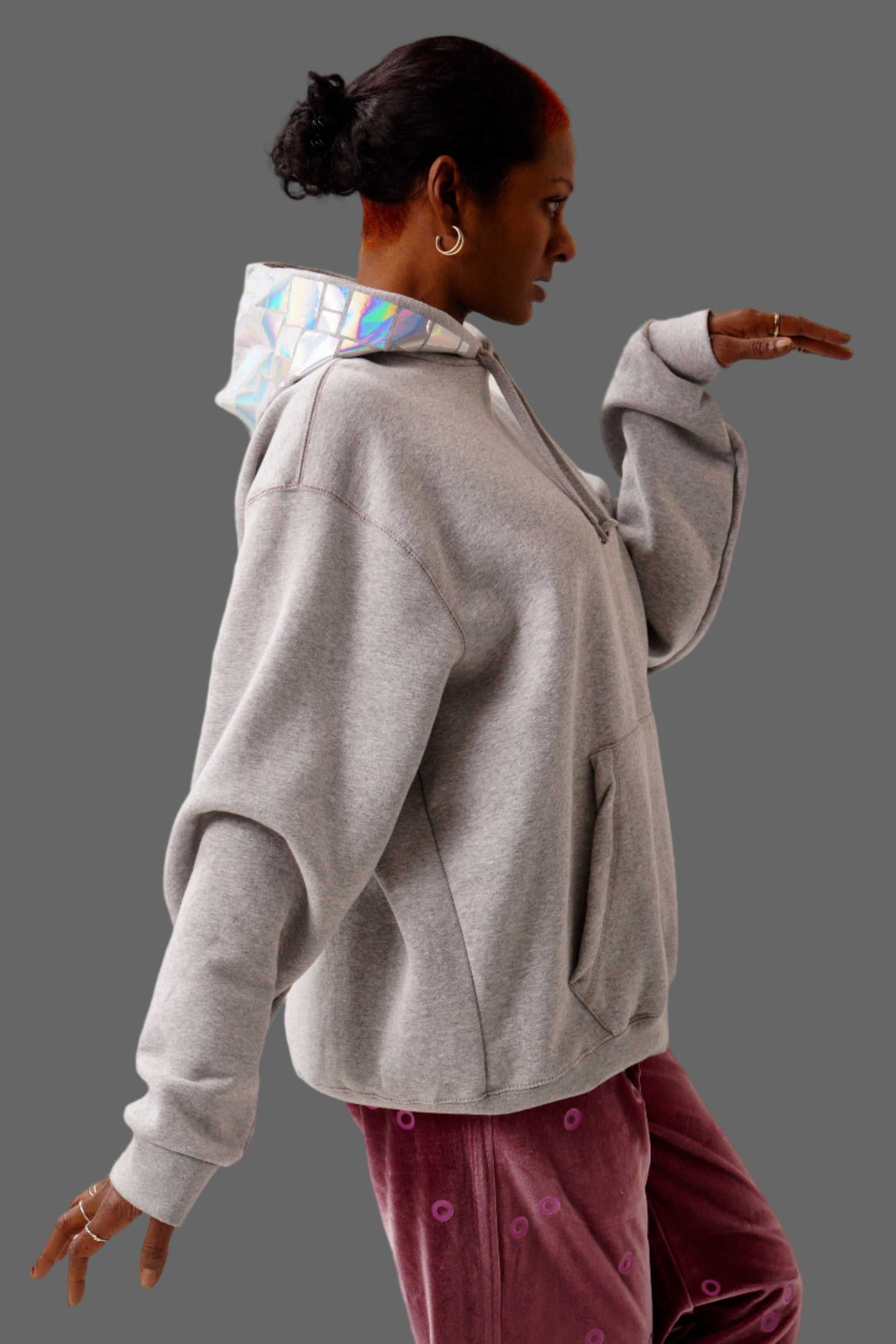High quality unisex hoody with mosaic foil print in different colors on the hood and a big pocket on the front.