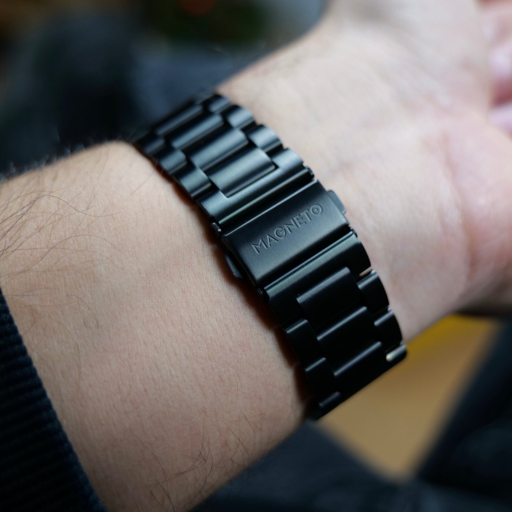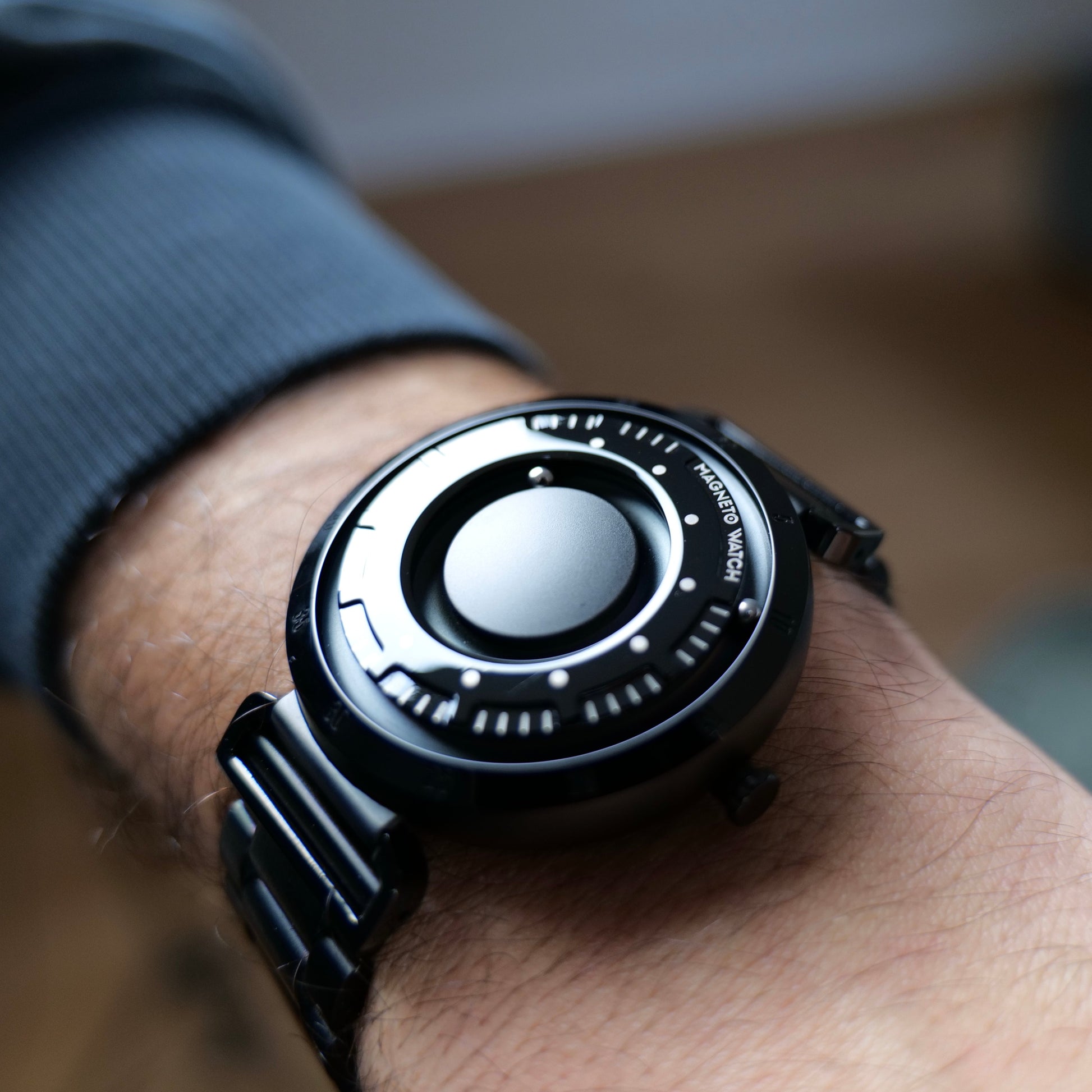 Die Magneto Nexus Black vereint modernes Design mit minimalistischer Raffinesse. Ihr teilweise glänzend schwarzes Gehäuse aus hochwertiger Alloy und die innovative Magnetzeiger-Technik machen diese Uhr zu einem echten Blickfang. Zwei schwebende Kugeln ersetzen klassische Zeiger und verleihen der Uhr einen futuristischen Touch. Das schwarze Edelstahlarmband mit Gliedern und Faltschließe bietet Komfort und Stil in Perfektion. Gehäusedurchmesser: 43 mm, Gehäusehöhe: 12 mm. Die perfekte Wahl für alle, die Eleganz und Innovation lieben und ein Statement setzen möchten.