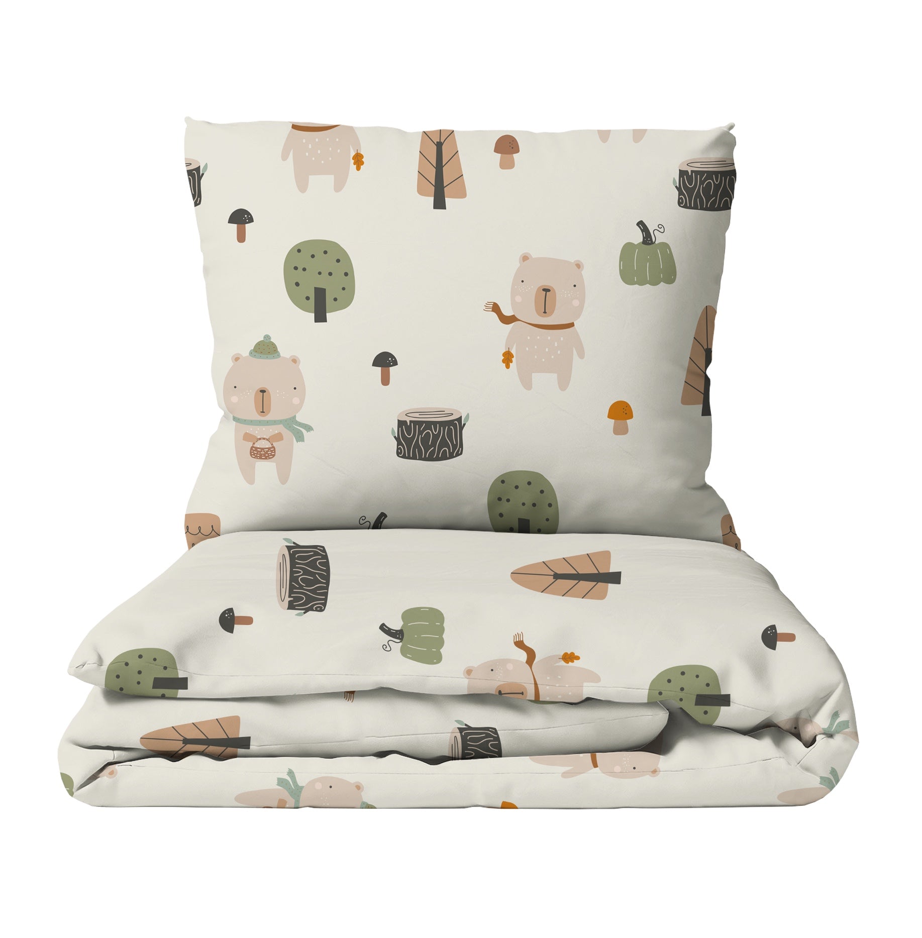 Herbstliche Gemütlichkeit: Das "Nordic Bär" Design auf dieser Kinderbettwäsche entführt dein Kind in eine herbstliche Waldlandschaft, in der ein kleiner Bär unter bunten Bäumen spielt. Die warmen Farbtöne und der freundliche Bär schaffen eine behagliche und beruhigende Atmosphäre, die zum Träumen einlädt. Hergestellt aus hochwertiger OEKO-Tex zertifizierter Baumwolle, bietet diese Bettwäsche eine weiche und angenehme Haptik, die ideal für die empfindliche Haut deiner Kleinen ist.