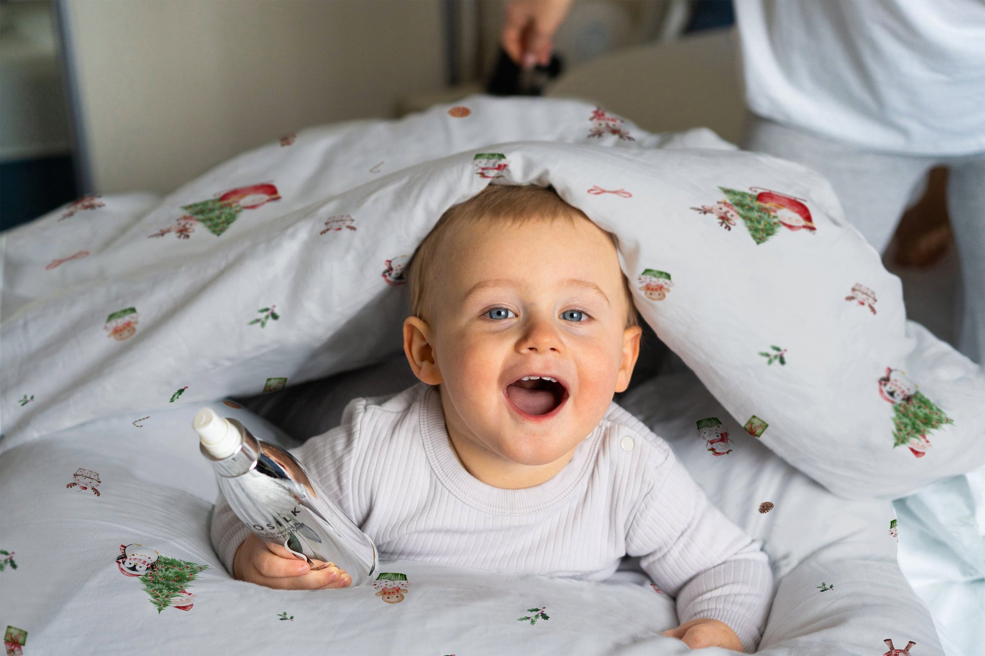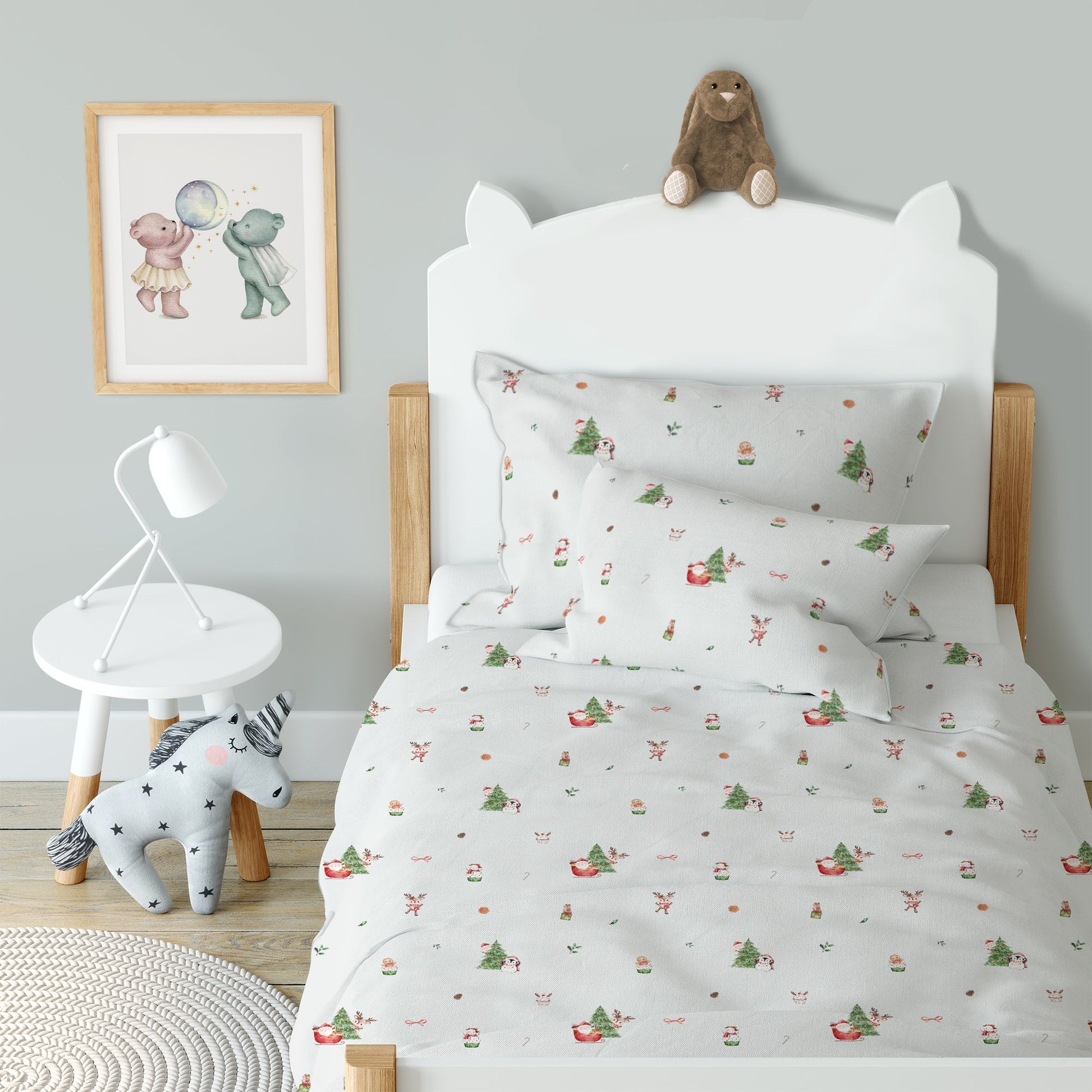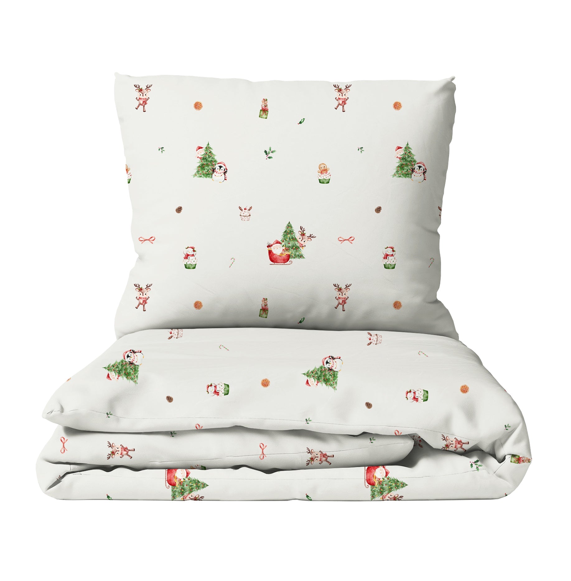 Nordisches Winterwunder: In diesem skandinavischen Design erwacht eine zauberhafte Weihnachtswelt zum Leben. Kleine Santas, festlich geschmückte Weihnachtsbäume, neugierige Rehe und fröhliche Pinguine tummeln sich in einer verschneiten Landschaft, die wie aus einem Märchenbuch entsprungen scheint. Jeder Blick auf dieses liebevoll illustrierte Motiv lädt zum Träumen ein und versprüht den magischen Charme der Weihnachtszeit. Gefertigt aus OEKO-Tex 100 zertifizierter Baumwolle, sorgt die Bettwäsche für kuscheligen Komfort und begleitet dein Kind in eine Welt voller Freude und Winterabenteuer. Ideal für kleine Entdecker, die von einer nordischen Weihnachtsreise träumen!
