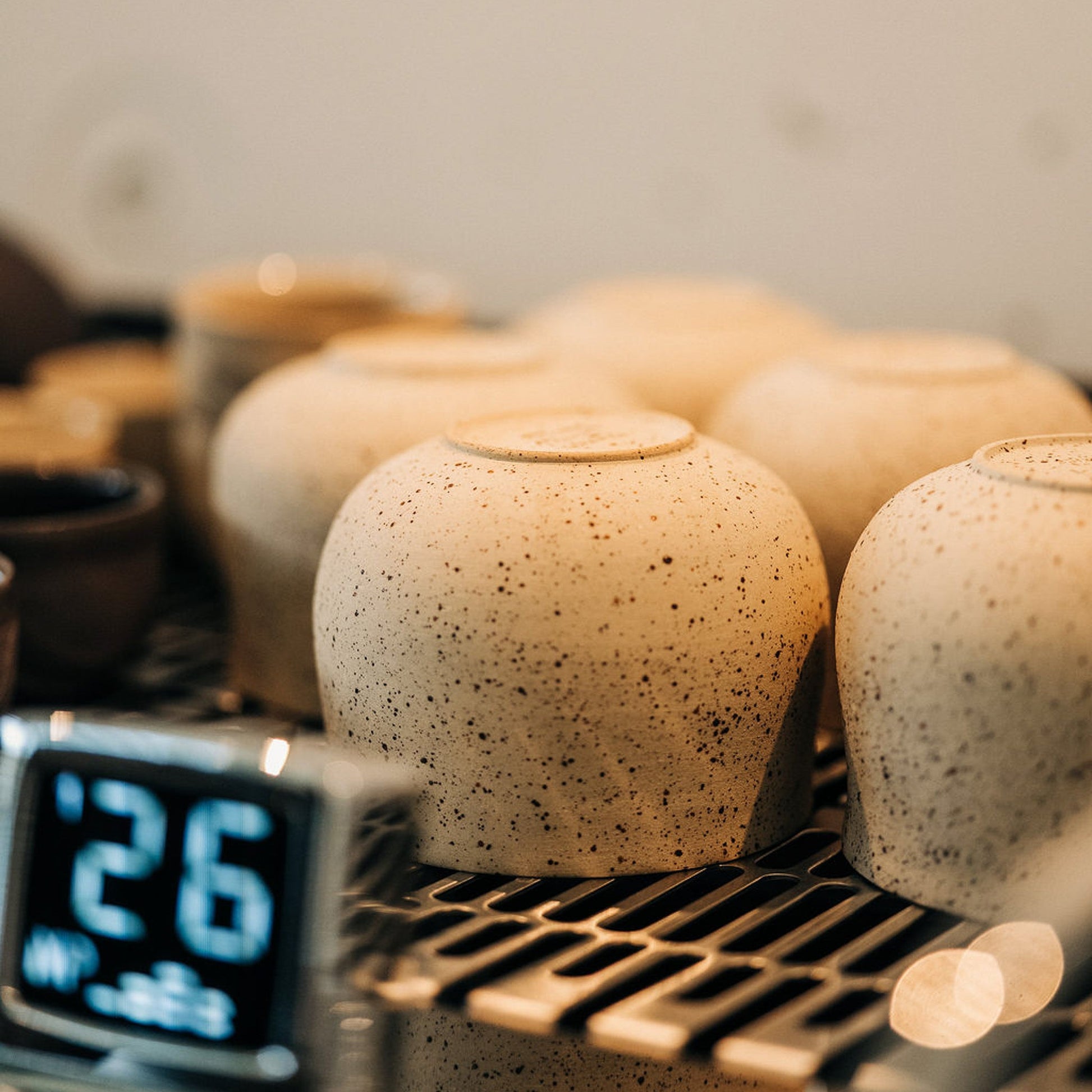 Die Ocha Teetasse verbindet zeitloses, minimalistisches Design mit echter Handwerkskunst. Jede einzelne Tasse wird in unserer Manufaktur in Mannheim auf der Töpferscheibe von Hand gedreht – so entsteht ein Unikat mit Charakter. Ihr sanft abgerundeter Körper, der feine Fuß und die warme Farbgebung in Beige mit zarten Spots machen sie zu einem besonderen Begleiter für deine täglichen Rituale – ob du Tee, Matcha oder Kaffee genießt.