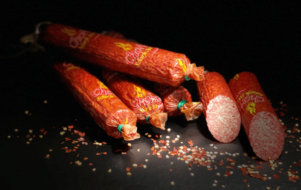 Unsere Scharfe Stange ist die perfekte Wahl für alle, die würzige Snacks lieben. Diese geräucherte Salamistange wird nach traditioneller Rezeptur aus bestem Schweinefleisch hergestellt und mit einer fein abgestimmten Chili-Würzung veredelt. Das Ergebnis: Ein vollmundiger Geschmack mit einer feurigen Schärfe, die jeden Bissen zu einem besonderen Erlebnis macht.