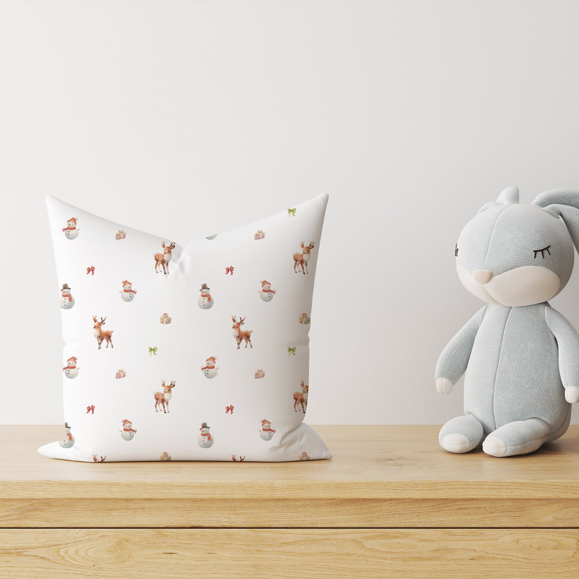 Ein nordischer Winterzauber: Dieses wundervolle Dekokissen zeigt fröhliche Schneemänner und verspielte Rehe, die in einem verschneiten Wald voller glitzernder Schneeflocken umherstreifen. Mit seinen liebevoll gestalteten Motiven bringt es den Zauber des Winters direkt ins Kinderzimmer und schafft eine gemütliche, festliche Atmosphäre. Hergestellt aus 100% reiner Baumwolle, sorgt der Kissenbezug für kuschelige Momente und lädt kleine Winterfreunde dazu ein, von frostigen Abenteuern und magischen Winterlandschaften zu träumen. Perfekt für alle, die die Schönheit des nordischen Winters lieben und sich in einer Welt aus Schnee und Zauber verlieren möchten!