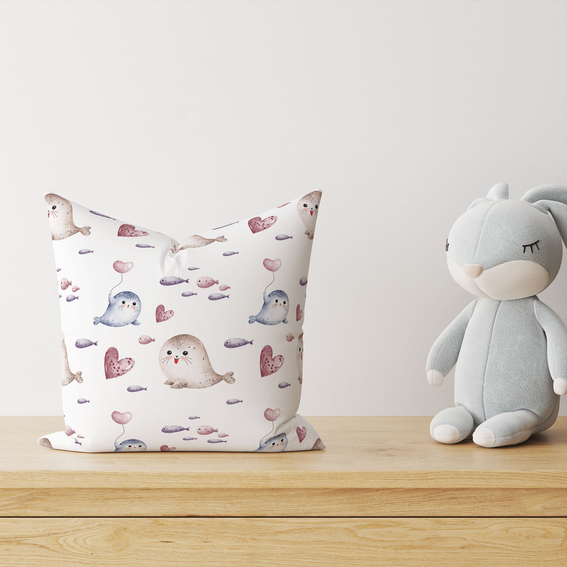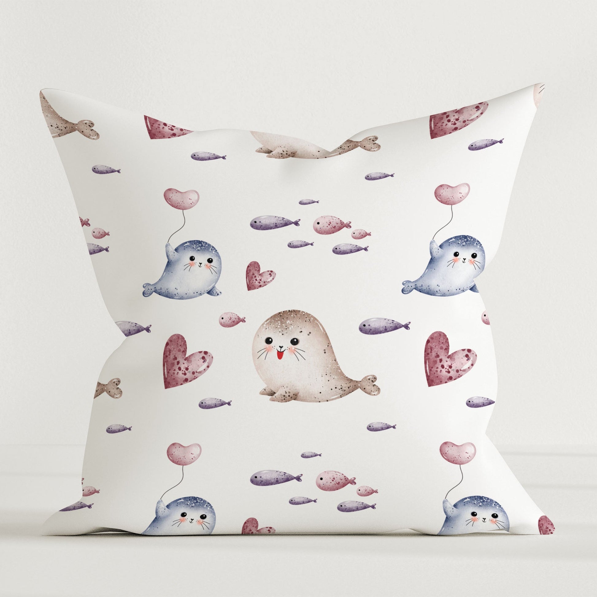 Verspielte Meeresfreunde: Die niedlichen Seehunde sind nicht nur Wasserkünstler, sondern auch wahre Kuschelmeister. Mit ihren neugierigen Blicken laden sie zum Träumen und Entdecken ein. Aus 100% reiner Baumwolle gefertigt, bietet dieser Kissenbezug ein weiches und hautfreundliches Erlebnis für jedes Kind. Das maschinenwaschbare Kissen ist bereit für alle kleinen und großen Abenteuer, die der Tag bringt.