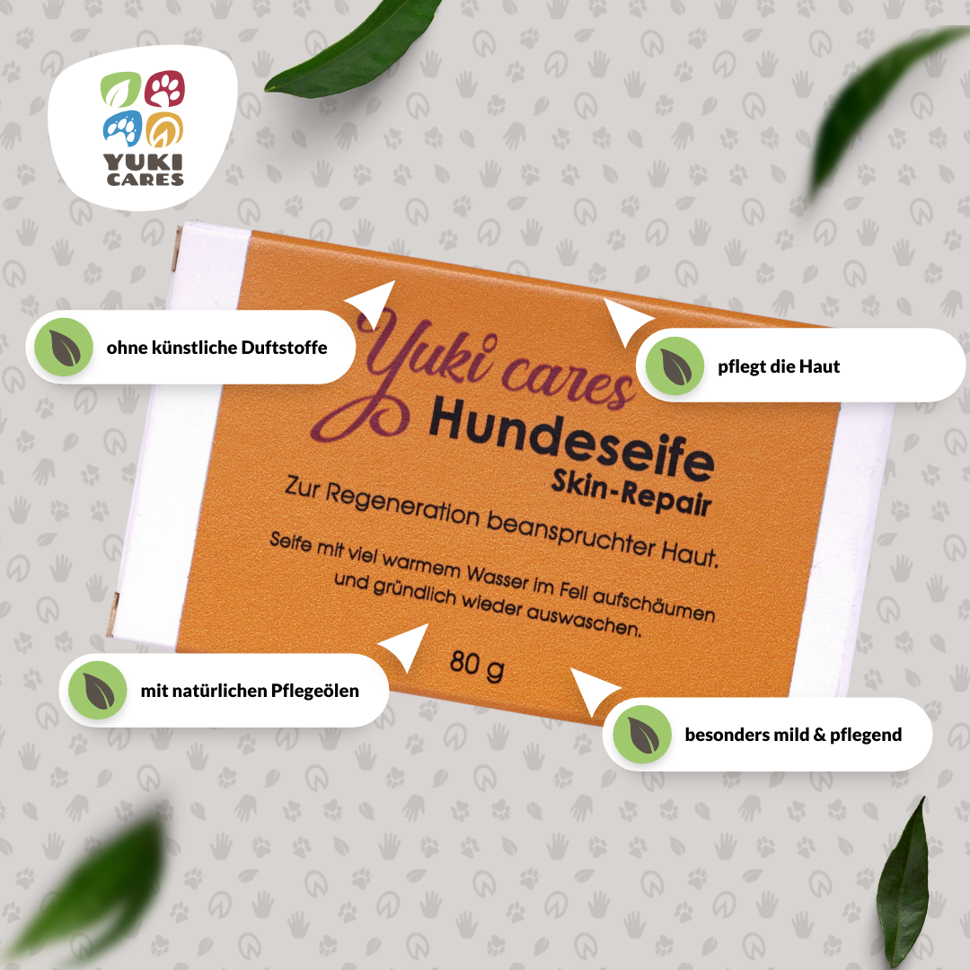 Ob kleine Kratzer, wunde Stellen oder nach einer Operation – die richtige Reinigung ist entscheidend für die Heilung. Die Skin Repair Seife ist die ideale Alternative zu einem herkömmlichen Wundspray für Hunde. Sie reinigt sanft, entfernt Schmutz und unterstützt die Hautregeneration ganz natürlich.