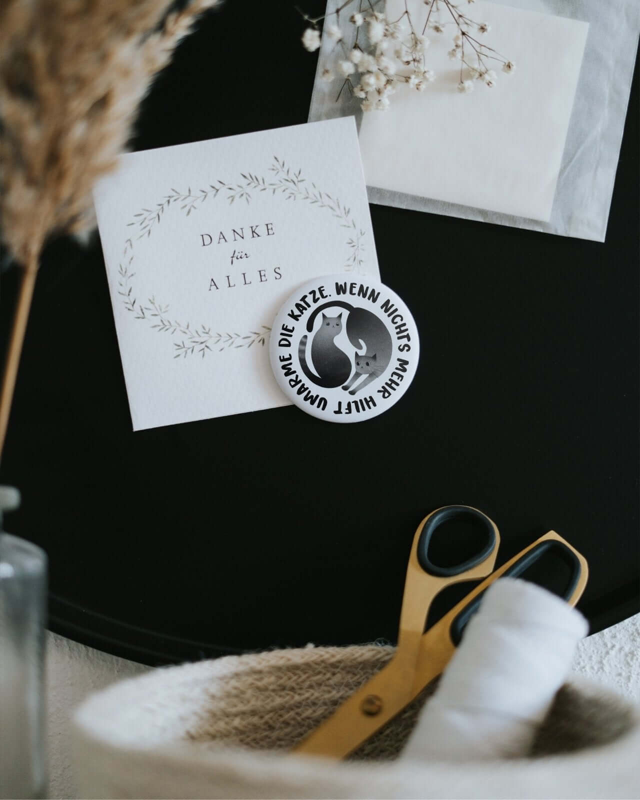 Ein Spruch, der Katzenmenschen aus der Seele spricht – liebevoll verpackt als stilvolles Mitbringsel.