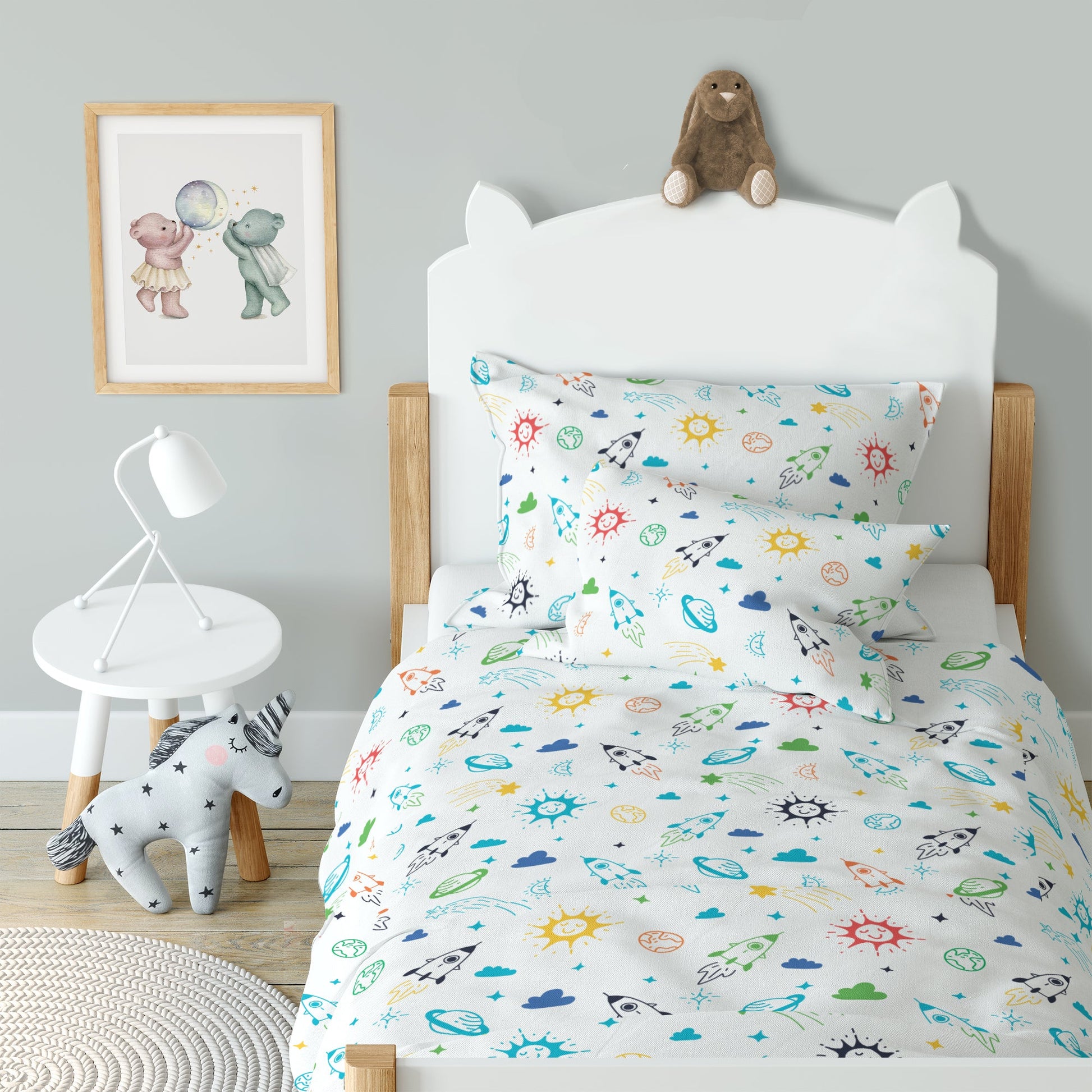 Unendliche Weiten im Kinderzimmer: Das "Weltall" Design öffnet die Tore zu den Sternen direkt im Schlafzimmer deines kleinen Astronauten. Umgeben von funkelnden Sternen, fliegenden Raketen und fernen Planeten, wird jede Nacht zu einer spannenden Reise durch das Universum. Die "Weltall" Bettwäsche ist das perfekte Geschenk für kleine Weltraumforscher und trägt die Träume deines Kindes bis zu den Sternen.
