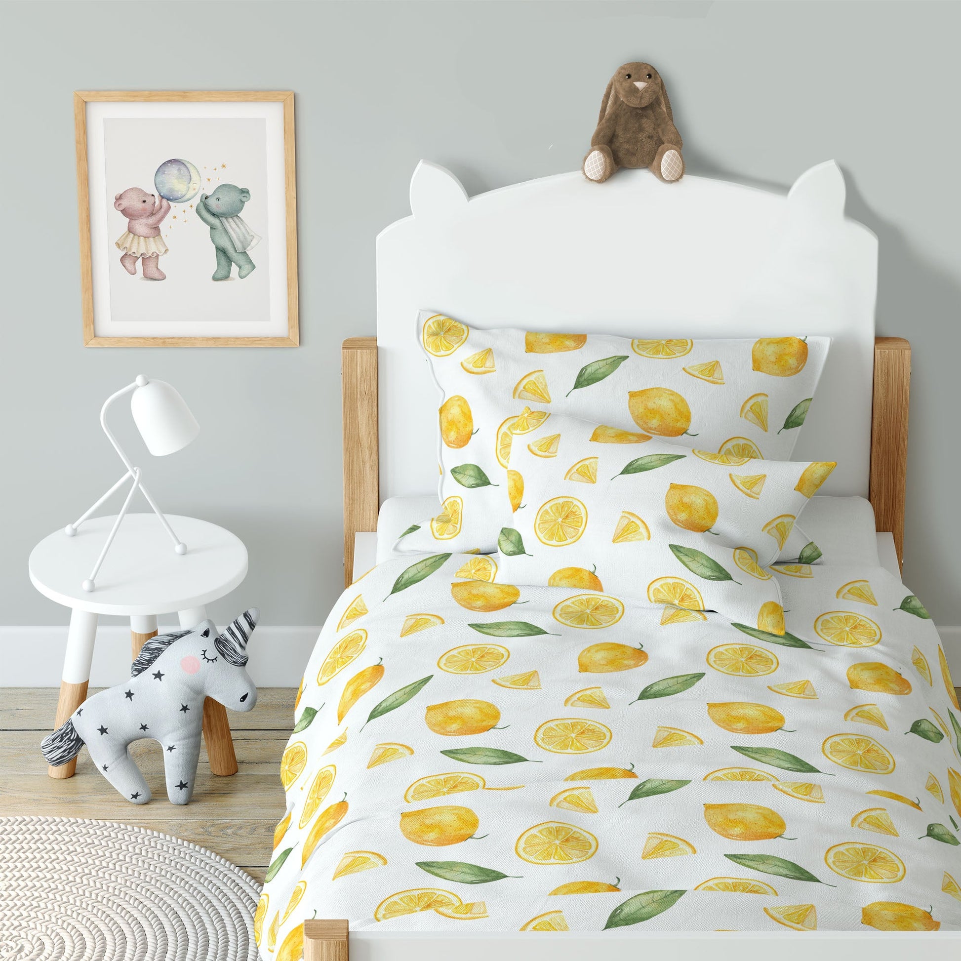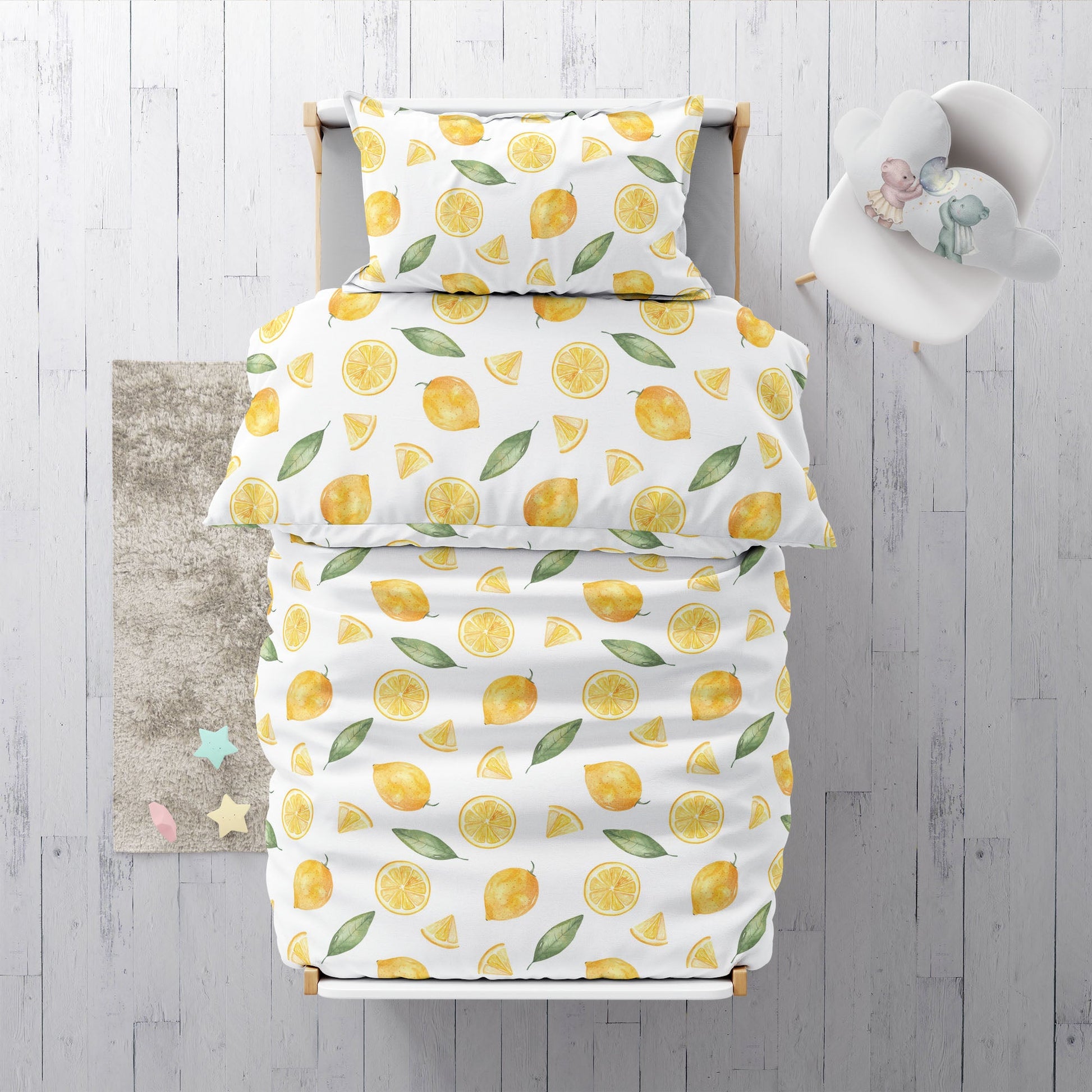 Sonnenküsse und Zitruszauber: Zitronen – spritzige und lebensfrohe Symbole des Sommers, verteilen ihre erfrischende Energie auf dieser charmanten Kinderbettwäsche. Mit lebendigen Farben und einem verspielten Zitronenmotiv verwandelt diese Bettwäsche jedes Kinderzimmer in eine Oase der Fröhlichkeit und des Wohlbefindens. Aus 100% reiner Baumwolle gefertigt, umschmeichelt dieser Bettbezug zarte Kinderhaut und verspricht eine kuschelige sowie atmungsaktive Schlafumgebung, ideal für süße Träume und erholsame Nächte.