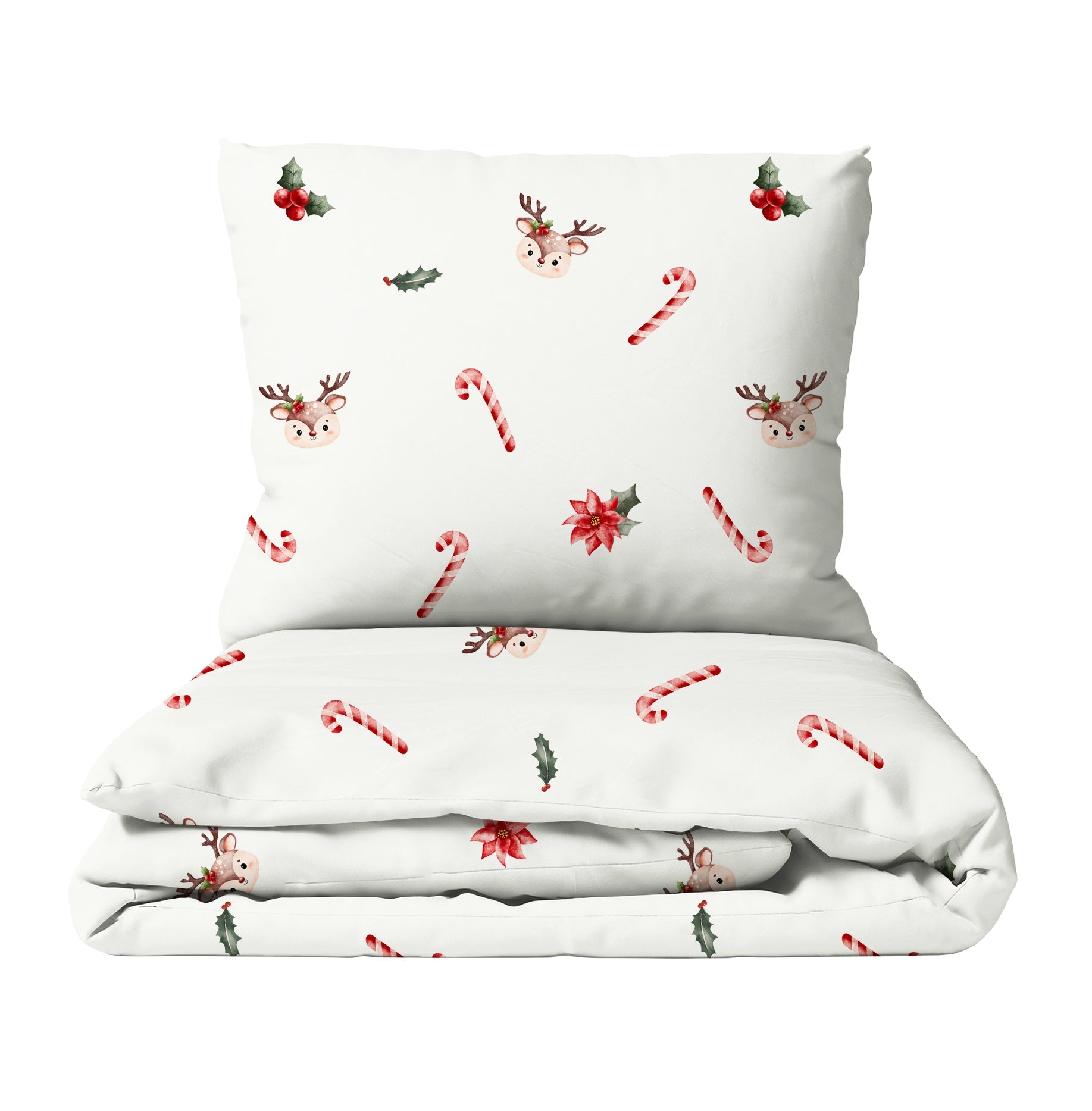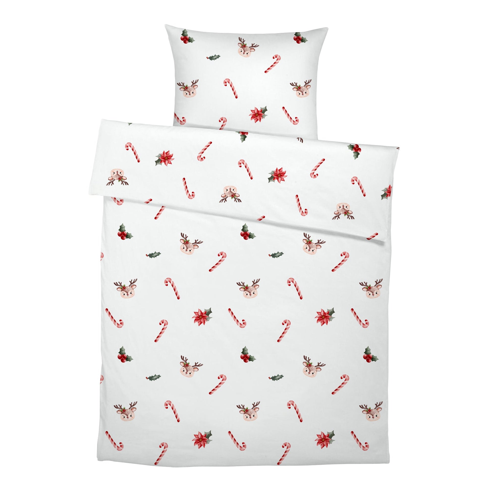 Weihnachtliche Träume: Lass dein Kind in eine verspielte Winterwelt eintauchen, in der kleine Rehe fröhlich zwischen süßen Zuckerstangen umherhüpfen. Dieses sanfte Zusammenspiel aus märchenhafter Natur und festlicher Magie bringt eine zauberhafte Atmosphäre ins Kinderzimmer. Die Bettwäsche, gefertigt aus OEKO-Tex 100 zertifizierter Baumwolle, bietet deinem Kind eine weiche und kuschelige Schlafumgebung, die zum Träumen einlädt. Mit dem Zuckerstangen- und Reh-Design schenkst du nicht nur gemütliche Bettwäsche, sondern auch eine Welt voller zauberhafter Winterabenteuer. Perfekt für kleine Weihnachtsfans und Tierfreunde!